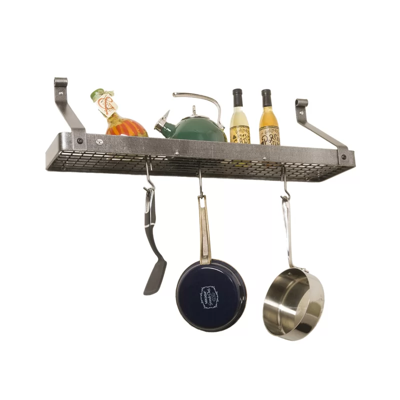 Enclume Gourmet USA Handcrafted Bookshelf Wall Mounted Pot Rack. Hammered Steel. 14″ H x 36″ W x 9″
