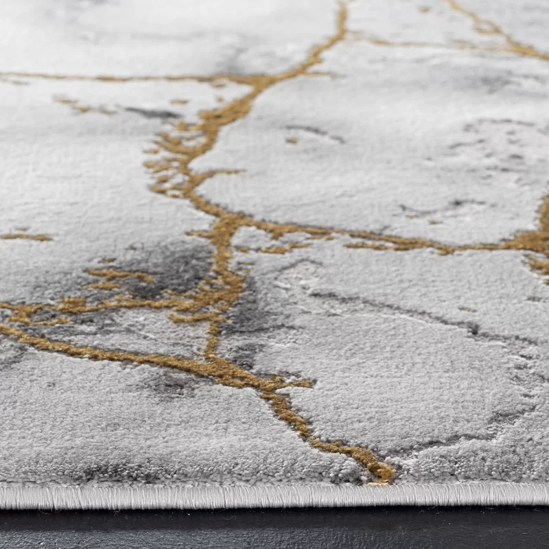 Wade Logan Swindle Machine Woven/Power Loomed Gray/Gold Rug. Rectangle 6-7″ x 9′
