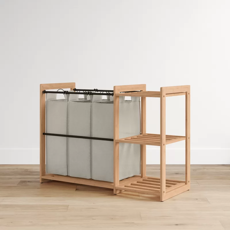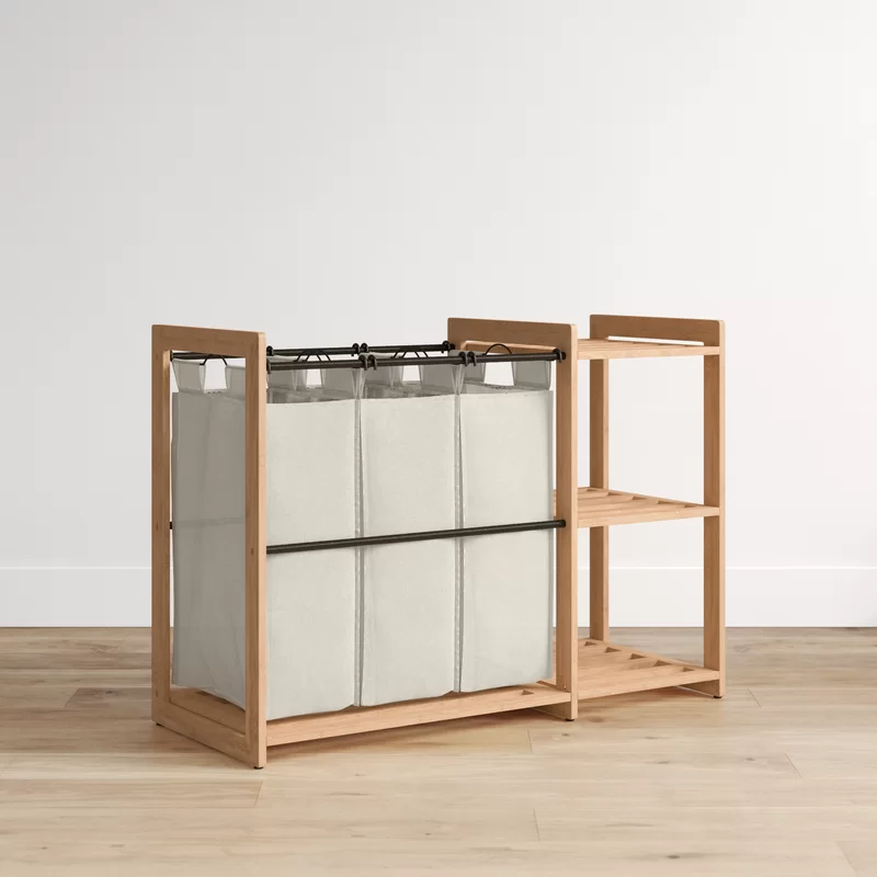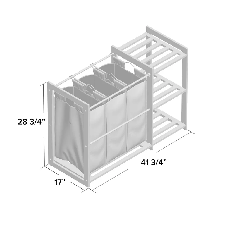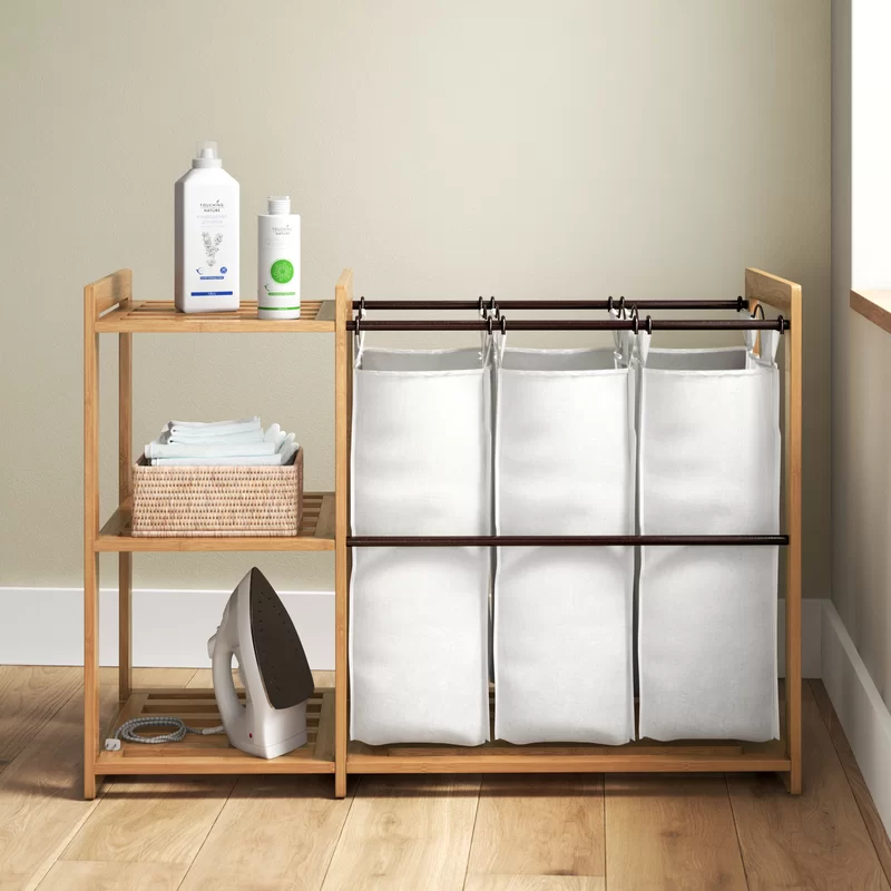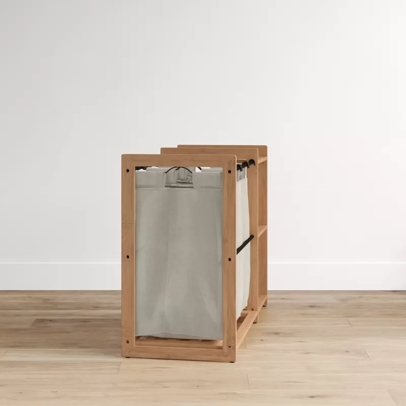 Dotted Line Bamboo 3 Bag Laundry Sorter