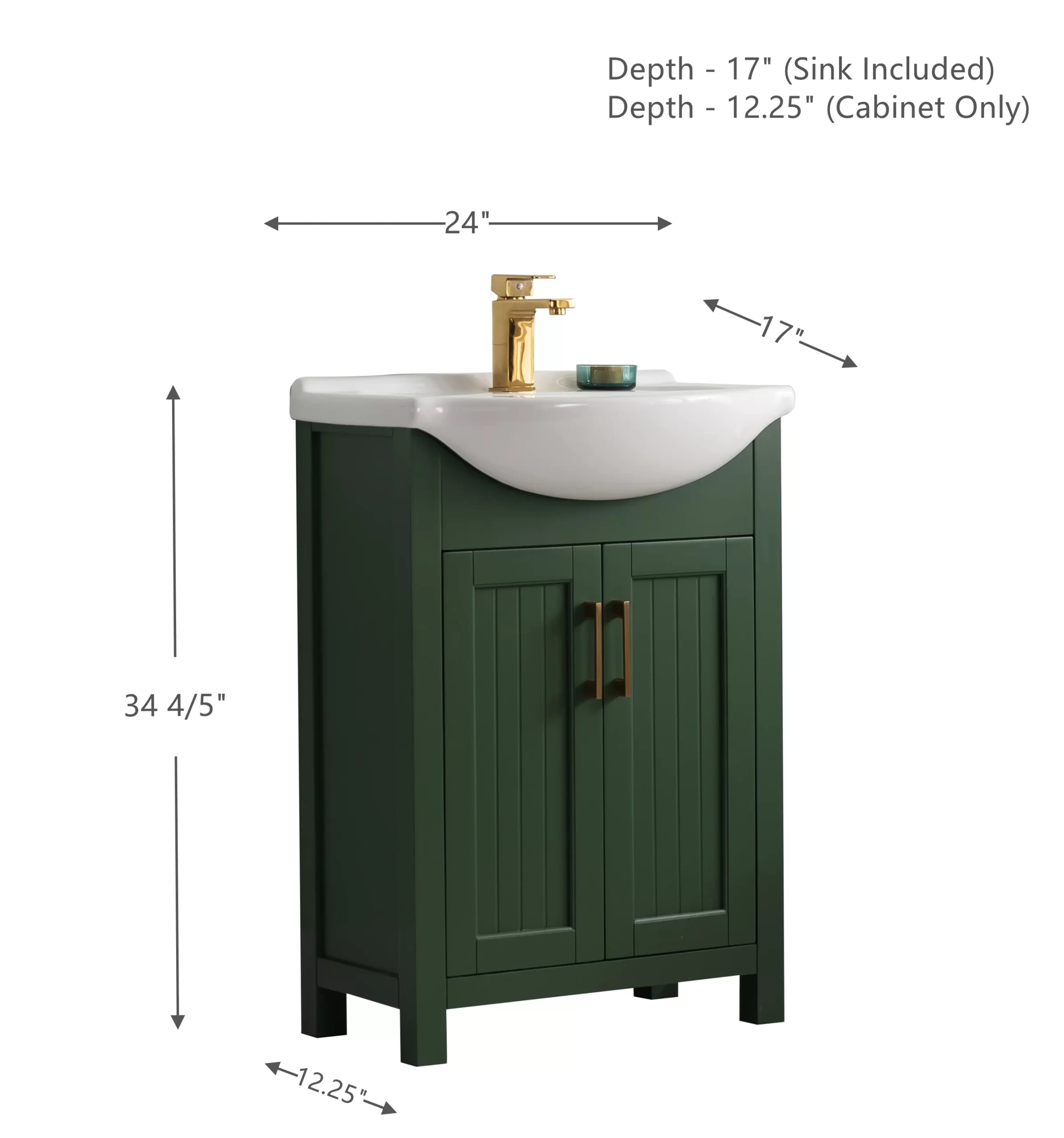 Ebern Designs Kentaro 24” Free-standing Single Bathroom Vanity. Muir Green
