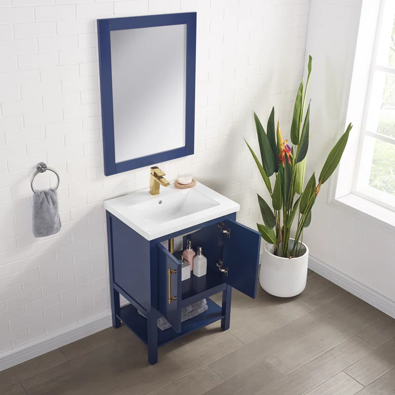 Sand & Stable Jewell 24.425” Free-standing Single Bathroom Vanity. Navy Blue