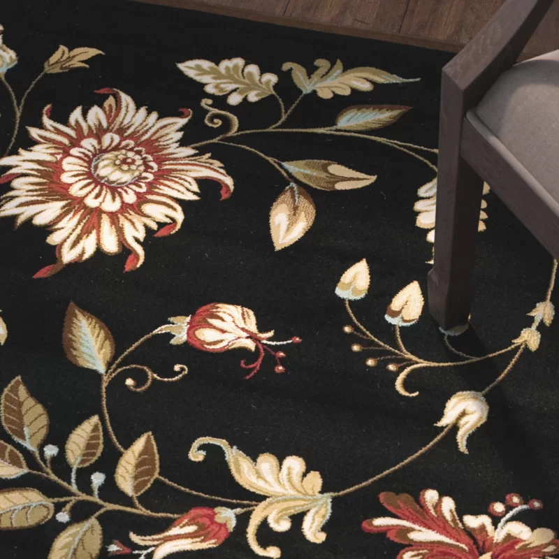 Winston Porter Carolane Machine Woven / Power Loomed Performance Black Rug