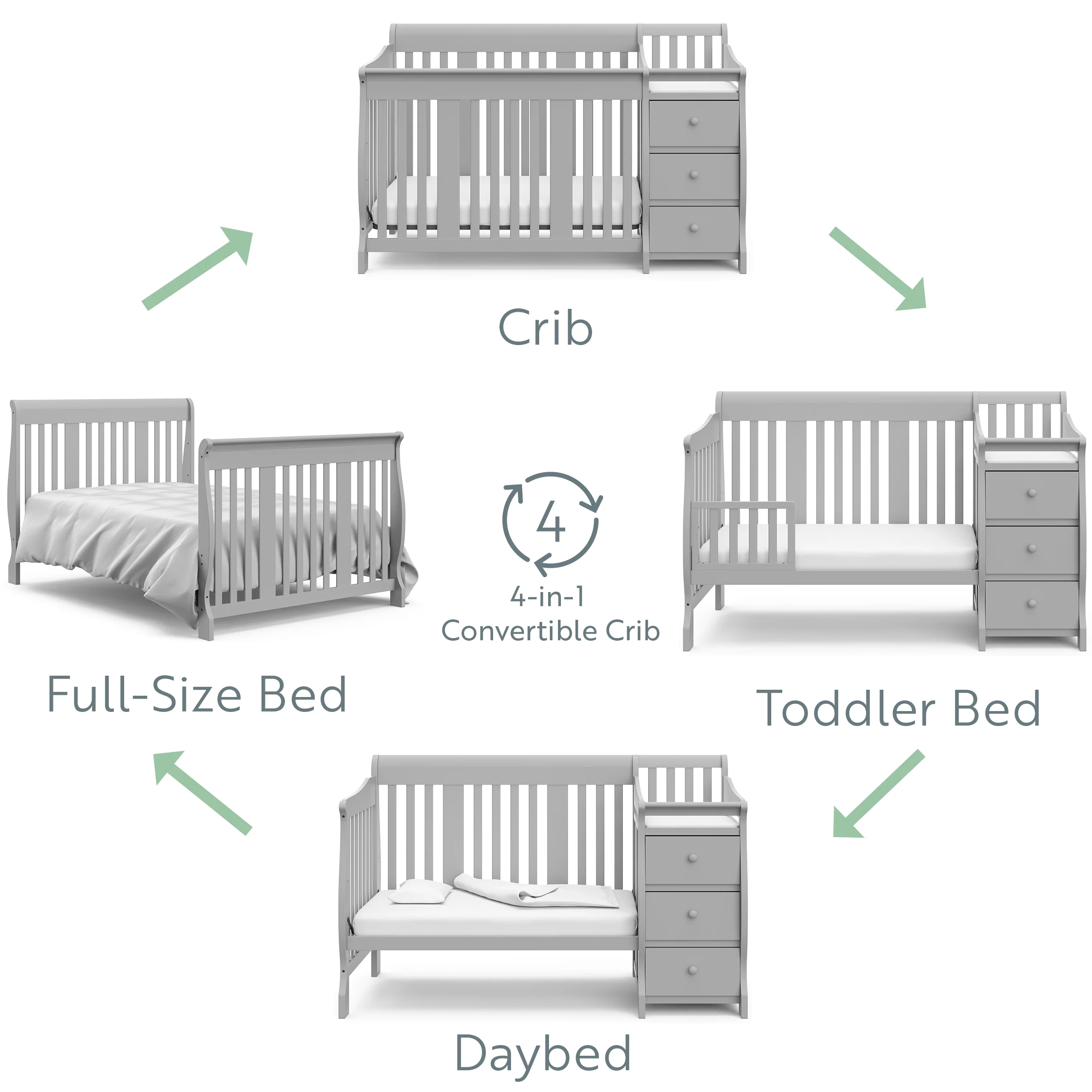 Storkcraft Portofino 5-in-1 Convertible Crib and Changer. 04586-47F. Pebble Gray