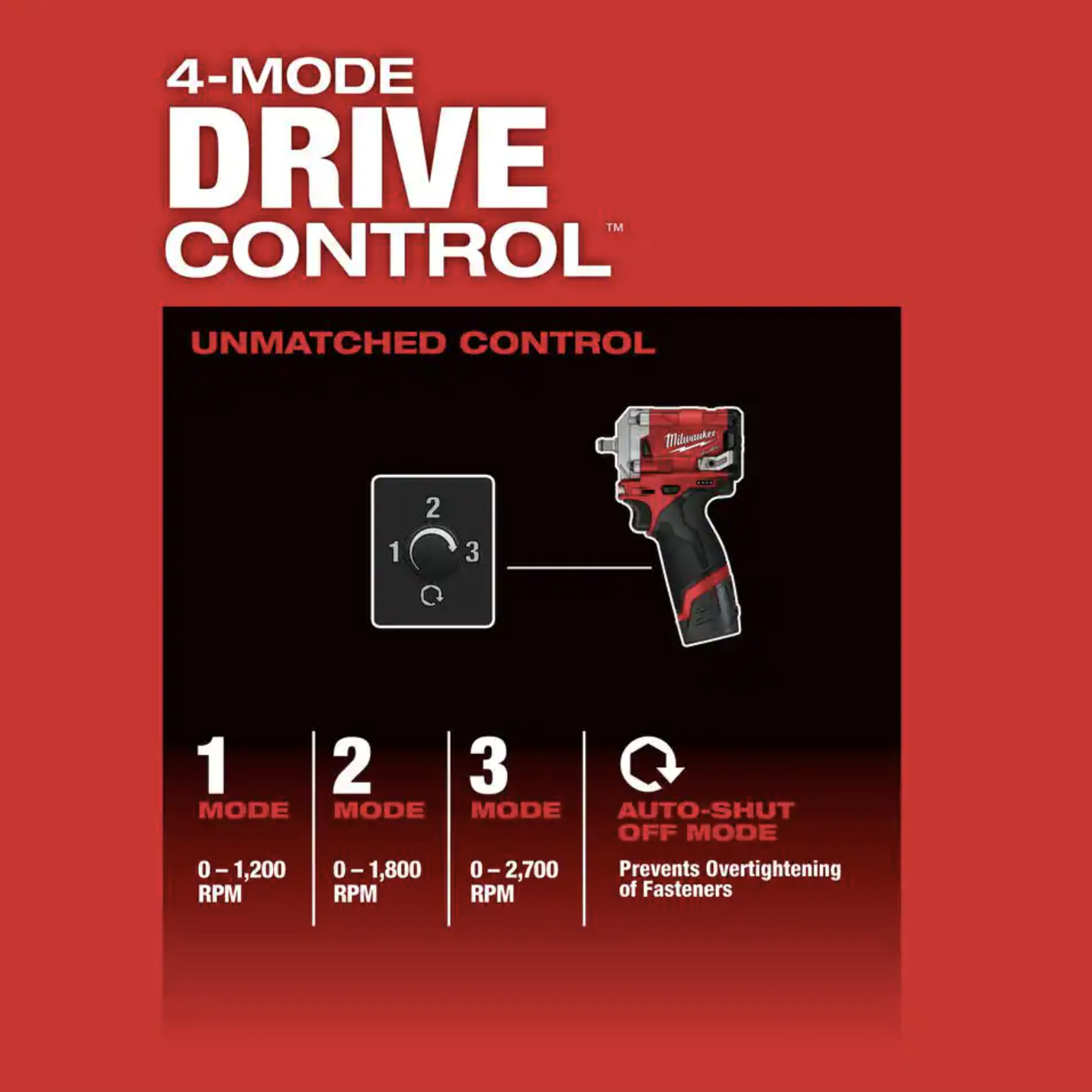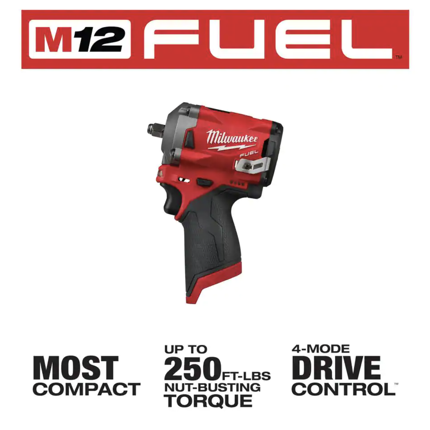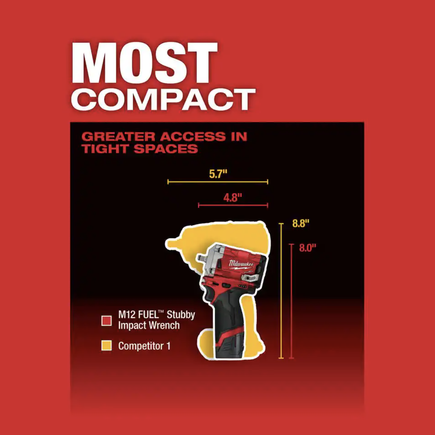 Milwaukee M12 FUEL 12V Lithium-Ion Brushless Cordless Stubby 3/8 in. Impact Wrench. Tool-Only (2554-20)