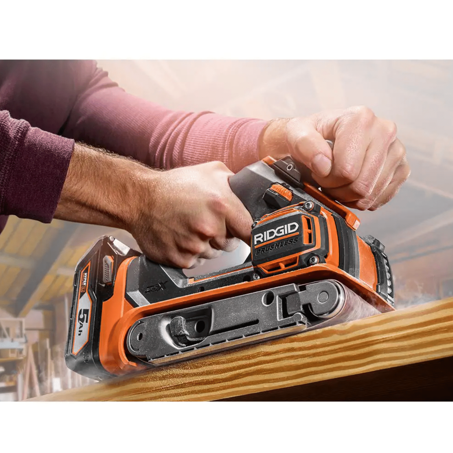 Ridgid 18V Brushless Cordless 3 in. x 18 in. Belt Sander with Dust Bag. Sanding Belt & 18V Lithium-Ion 4.0 Ah Battery (R86065B-AC87004)