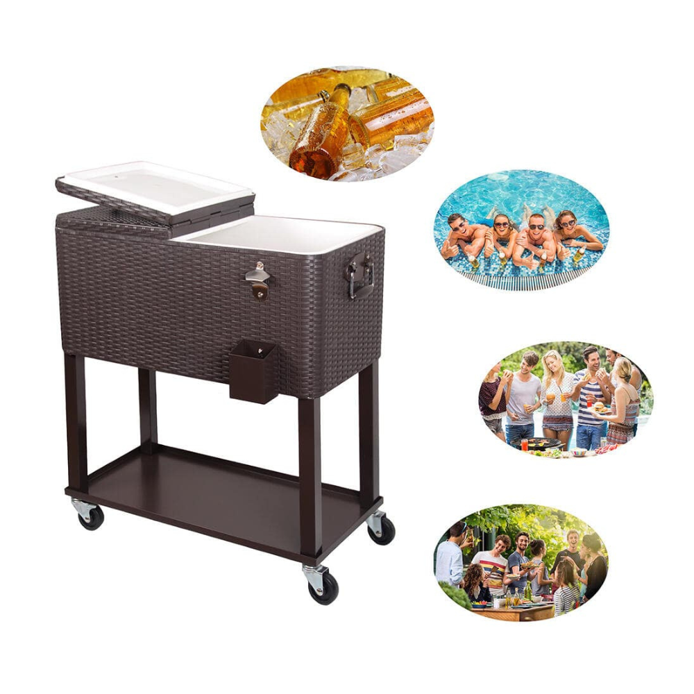Patio Watcher 80 Qt. Wicker Stainless Steel Wicker Patio Cooler Cart With Wheels In Brown