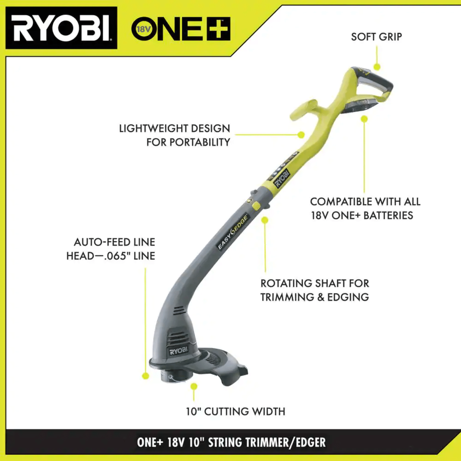 Ryobi ONE+ 18V 13 in. Cordless Battery String Trimmer/Edger (Tool Only)