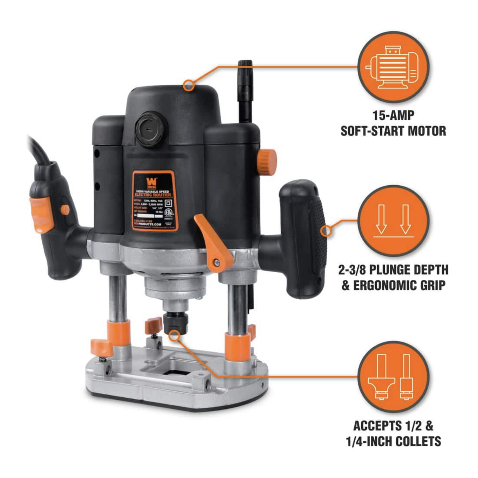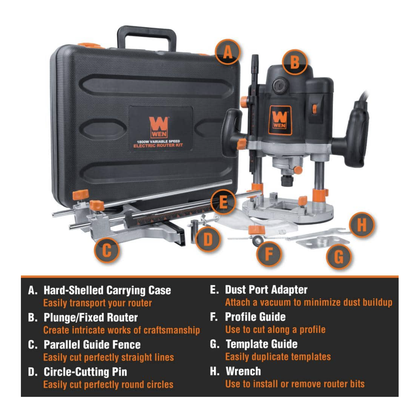 Wen 15 Amp Variable Speed Plunge Wood Working Corded Router Kit With Carrying Case And Edge Guide