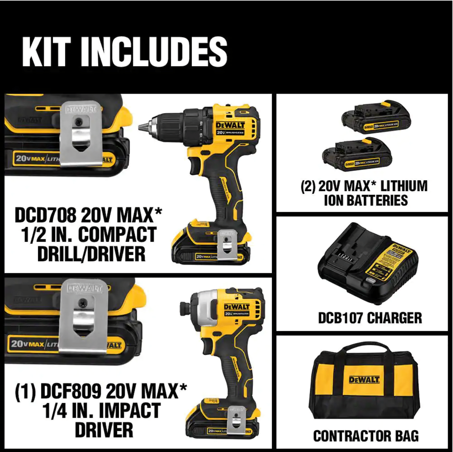 Dewalt DCD785C2 20-Volt MAX Cordless Compact 1/2 in. Hammer Drill/Driver with Batteries. Charger & Bag