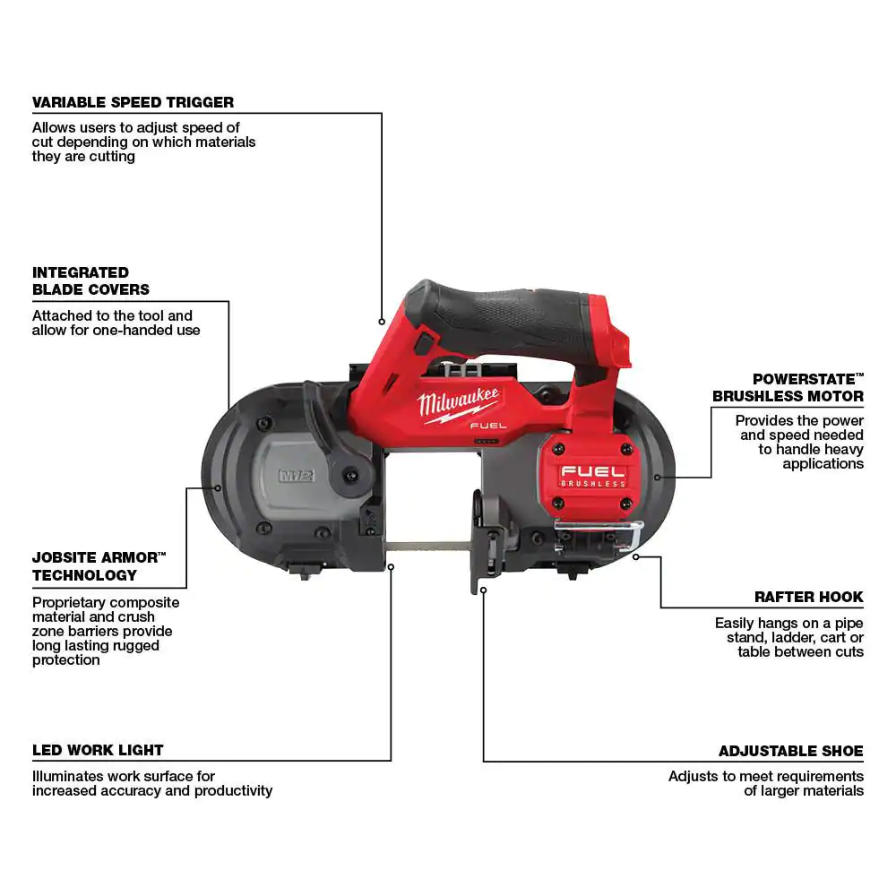 Milwaukee M12 FUEL 12V Lithium-Ion Cordless Sub-Compact Band Saw with (4) 12/14 TPI Extreme Metal Cutting Band Saw Blades