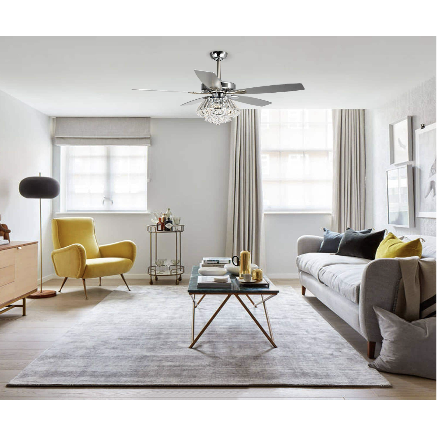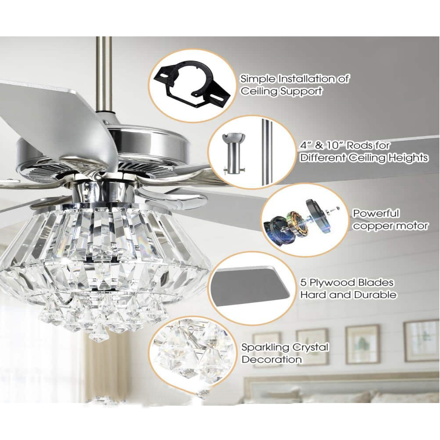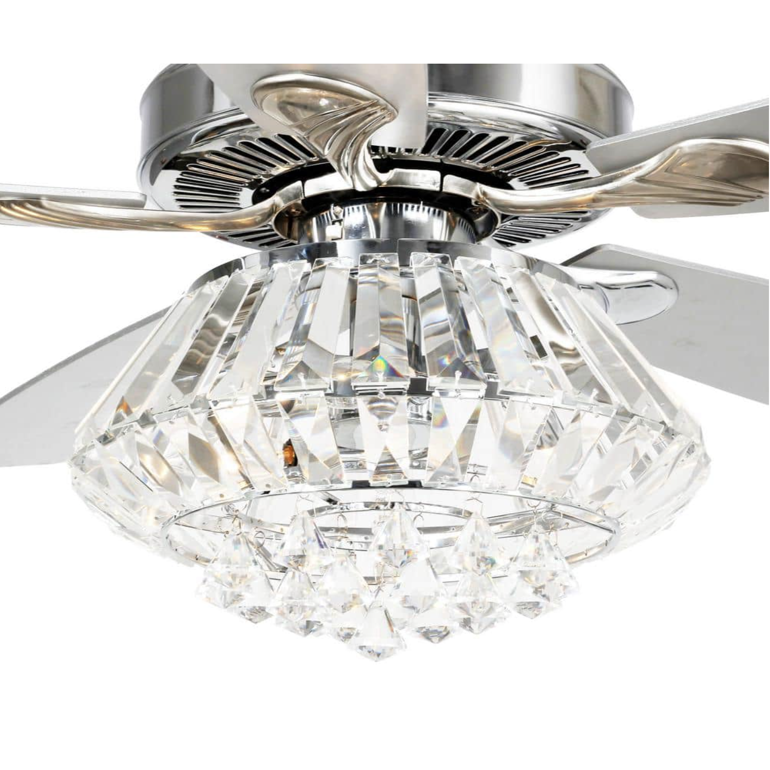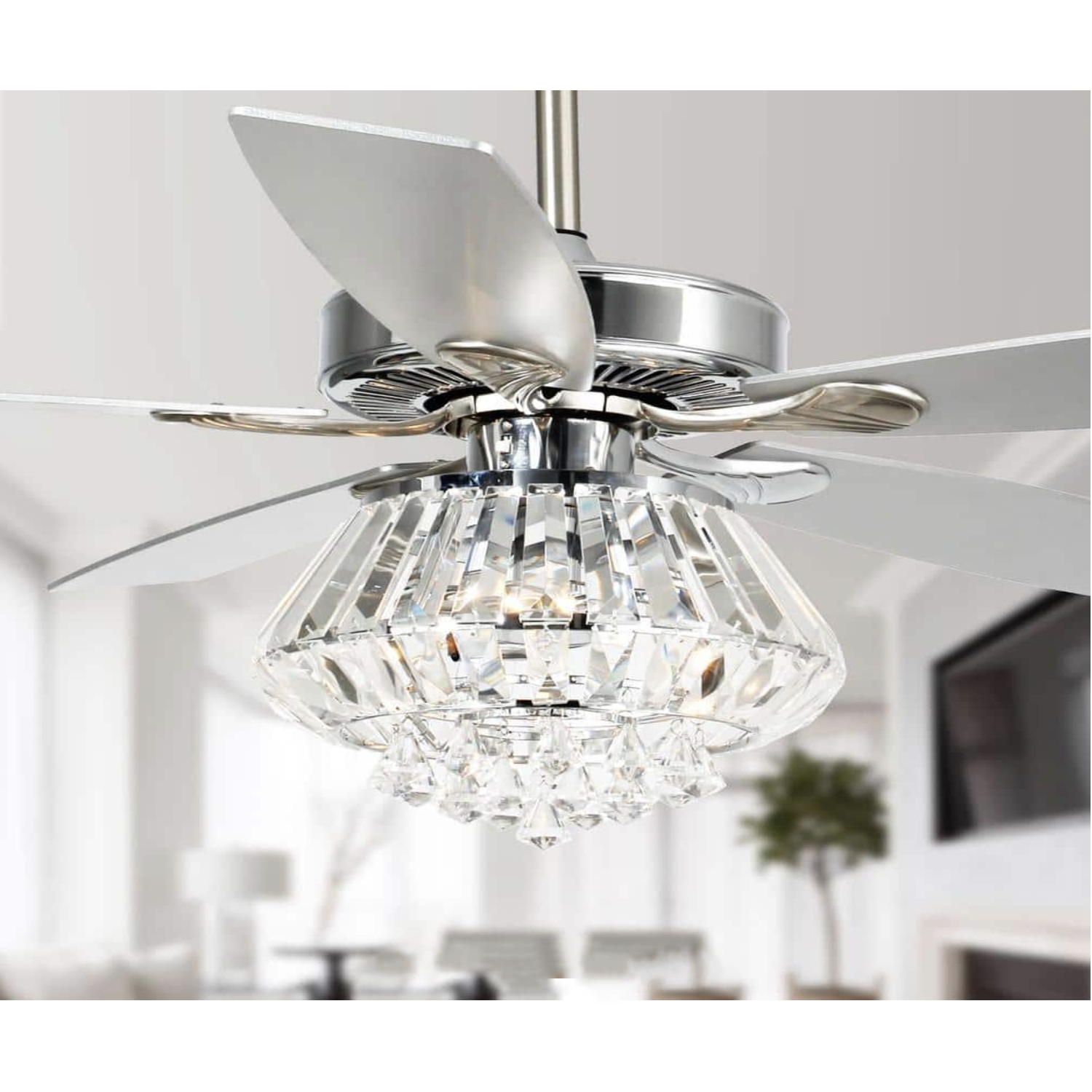 Parrot Uncle Zuniga 52 in. Indoor Chrome Downrod Mount Crystal Chandelier Ceiling Fan with Light Kit and Remote Control