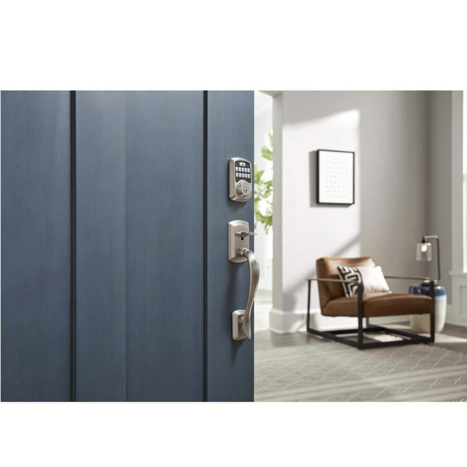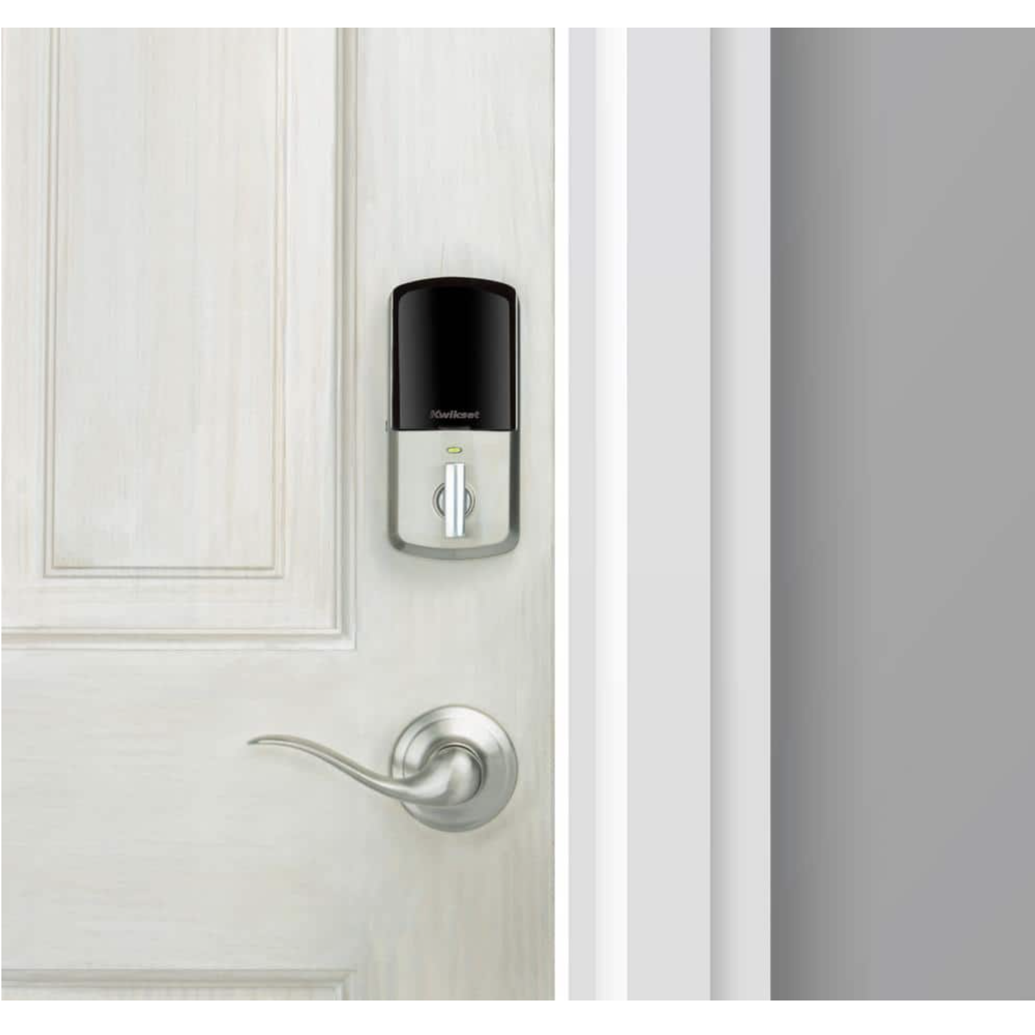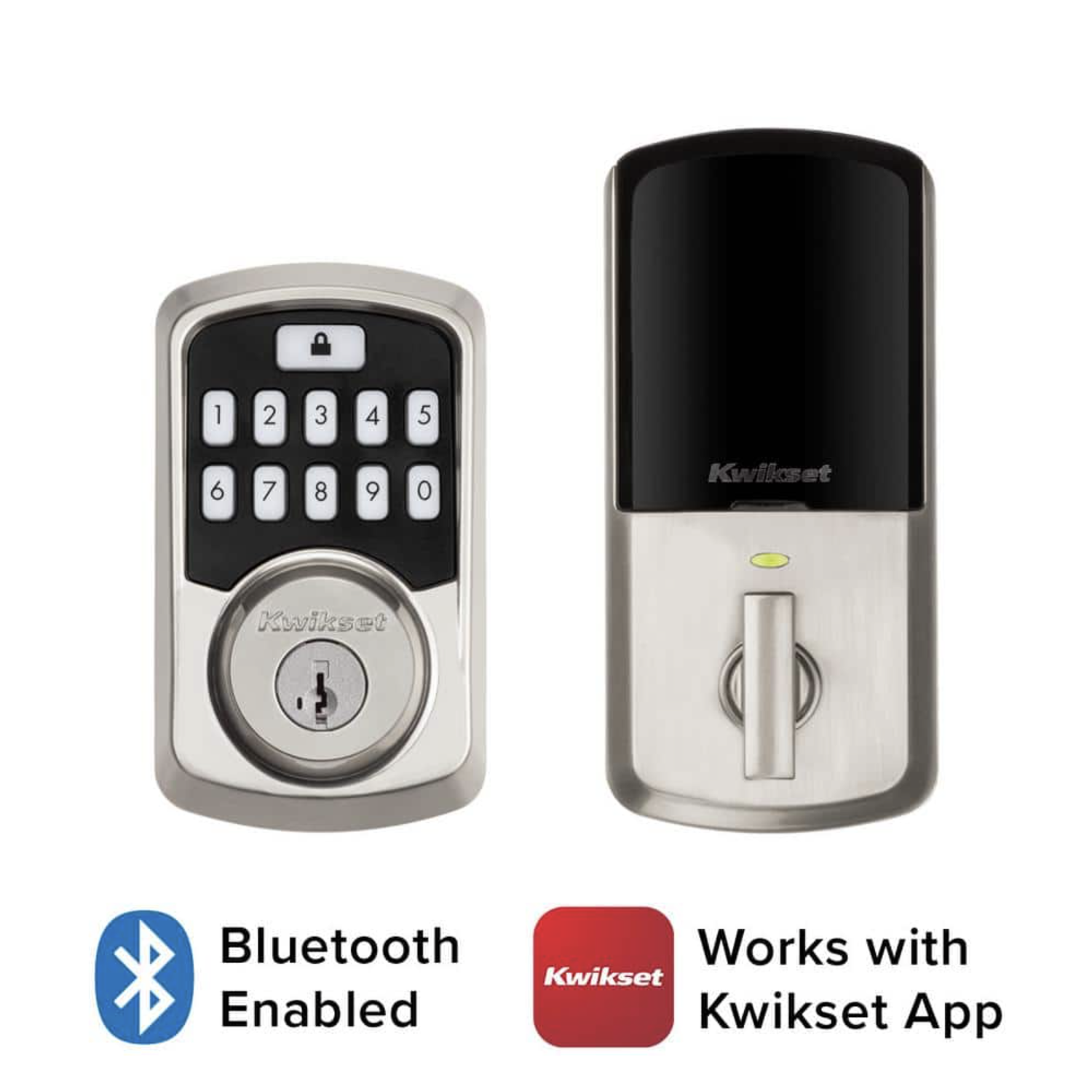 Kwikset Aura Satin Nickel Single Cylinder Electronic Bluetooth Keypad Smart Lock Deadbolt featuring SmartKey Security