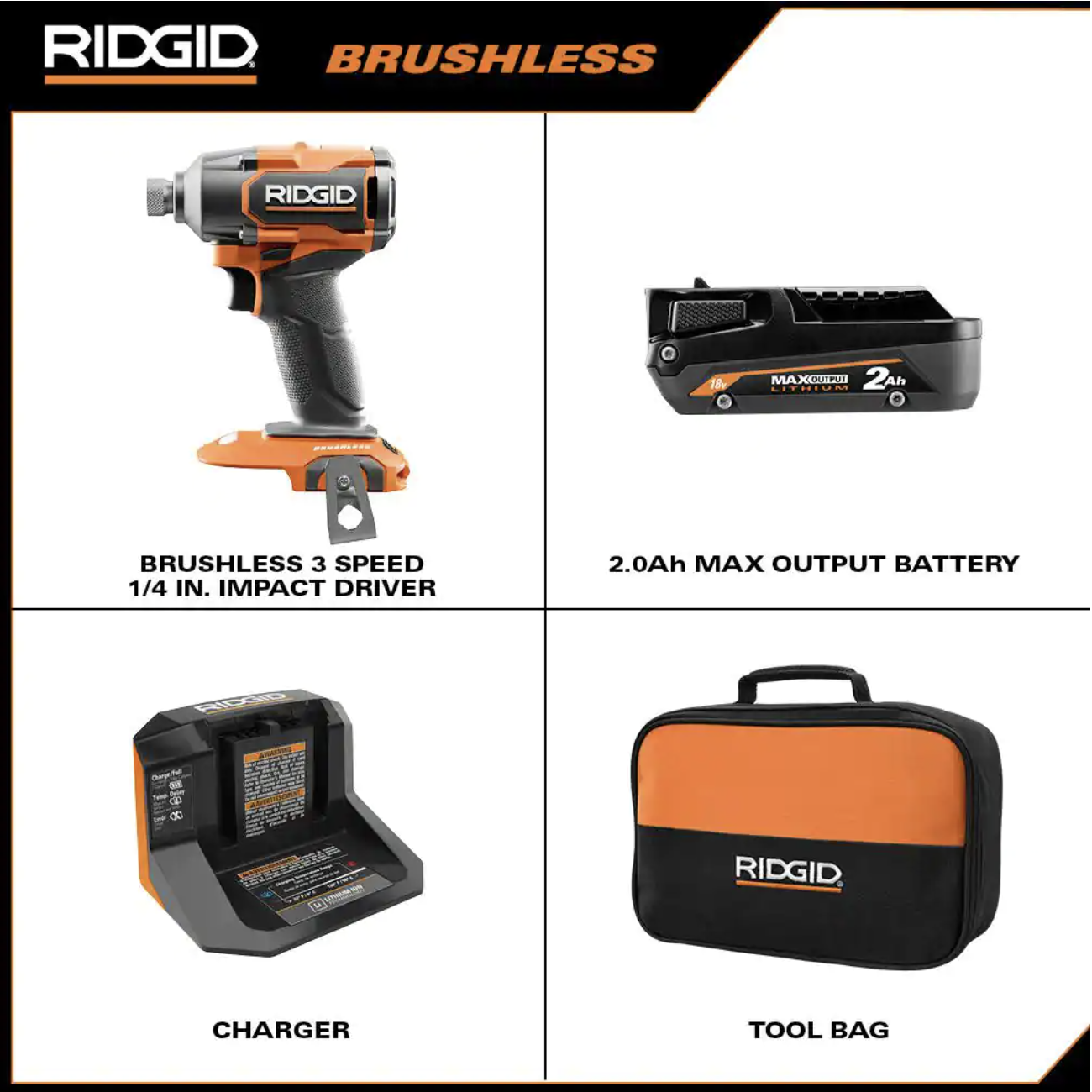 Ridgid 18V Brushless Cordless 3-Speed 1/4 in. Impact Driver Kit with 2.0 Ah MAX Output Battery and 18V Charger