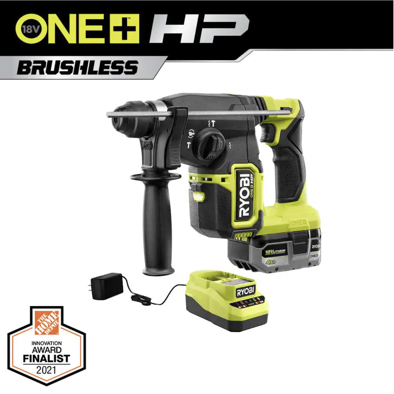 Ryobi One+ HP 18V Brushless Cordless 1 in. SDS Plus Rotary Hammer Kit with (1) 4.0 Ah Battery