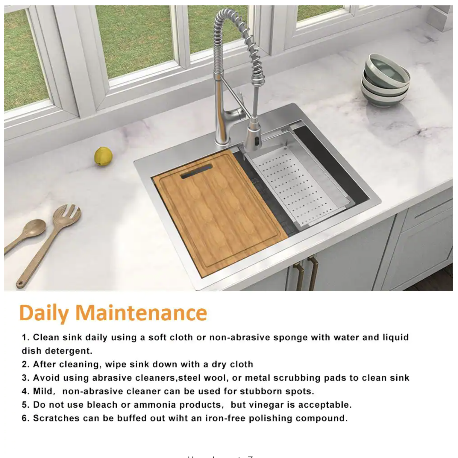 Glacier Bay 4311F Zero Radius Farmhouse Apron-Front 18G Stainless Steel 30 in. Single Bowl Workstation Kitchen Sink with Accessories
