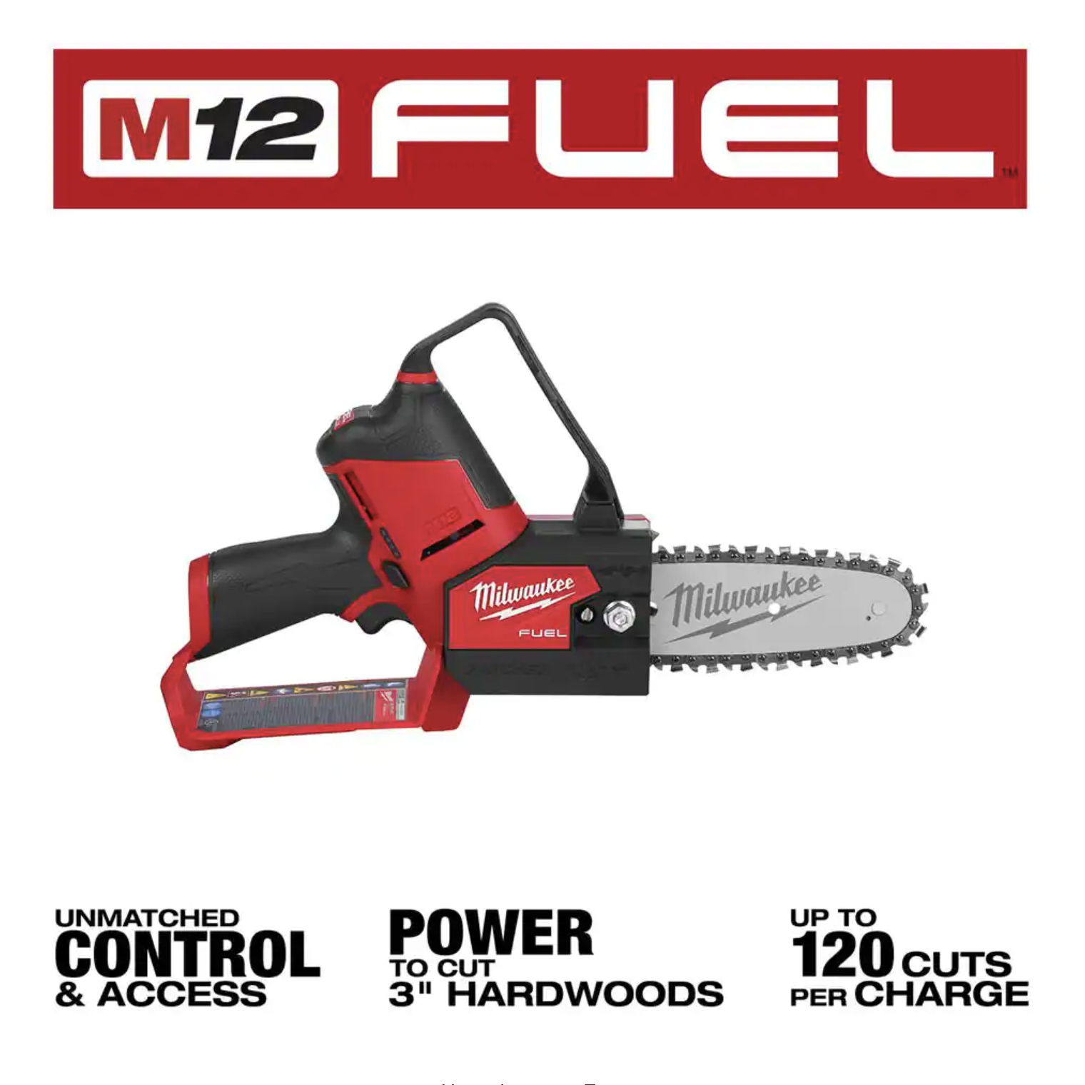 Milwaukee M12 FUEL 12-Volt Lithium-Ion Brushless Cordless 6 in. HATCHET Chainsaw (Tool-Only) with Extra 6 in. Chain (2527-20-49-16-2732)