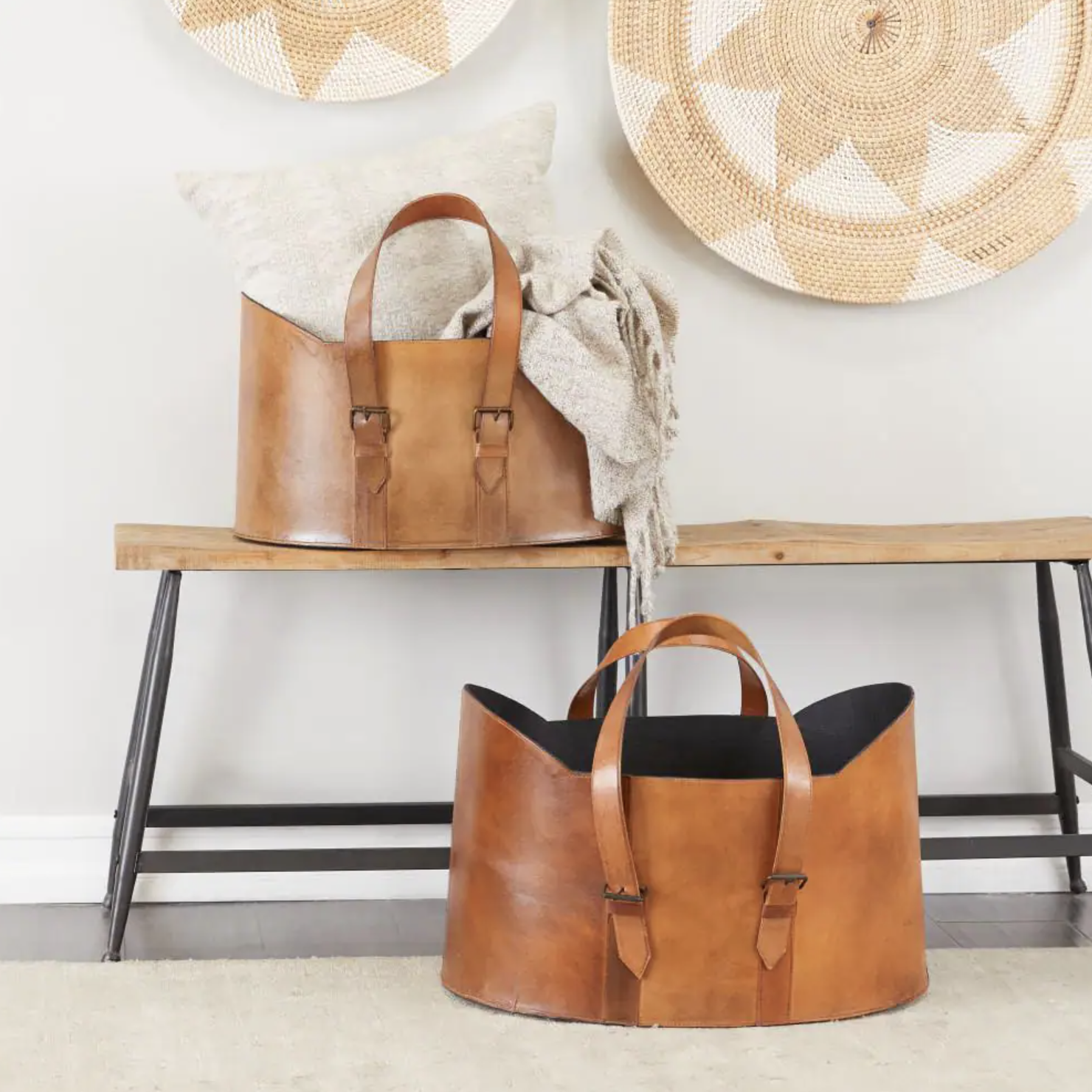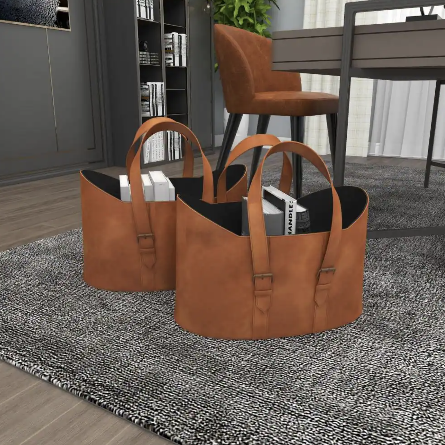 2-Pack Litton Lane Brown Leather Vintage Magazine Rack Holder