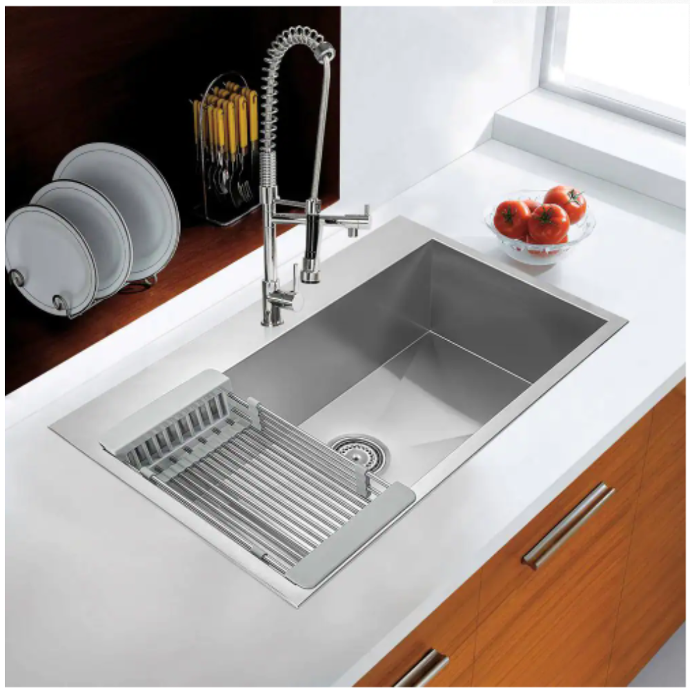 Akdy Handmade Drop-in Stainless Steel 30 in. x 18 in. Single Bowl Kitchen Sink with Drying Rack