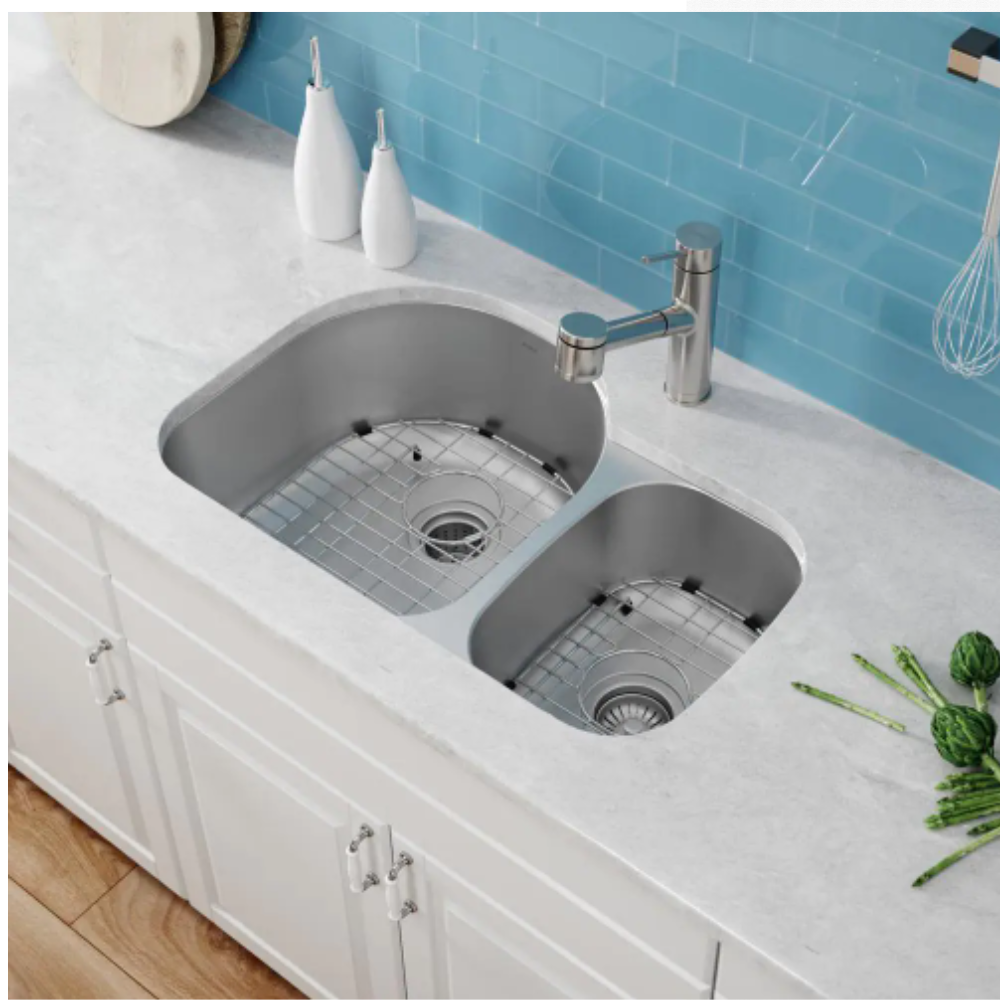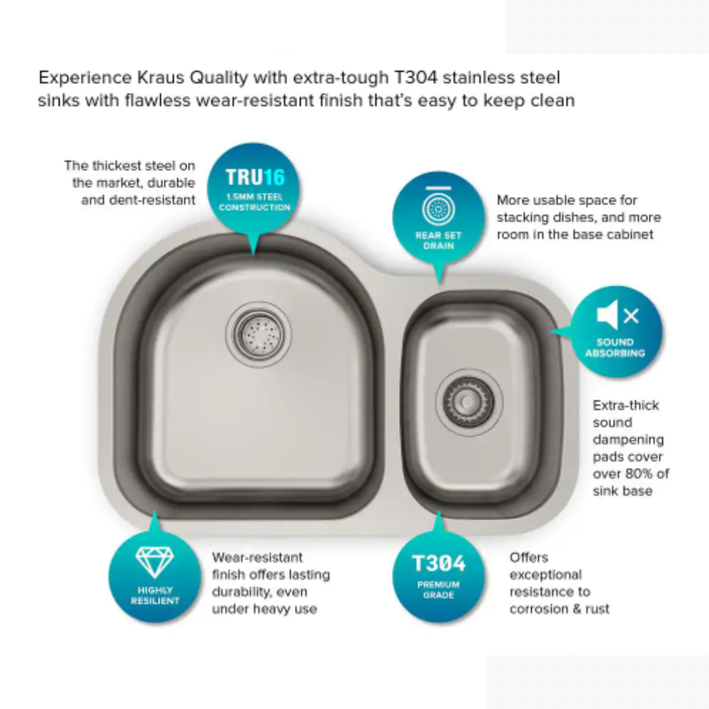 Kraus Premier Undermount Stainless Steel 30 in. 60/40 Double Bowl Kitchen Sink