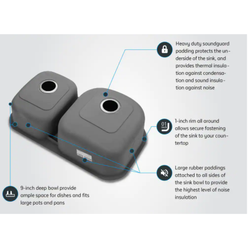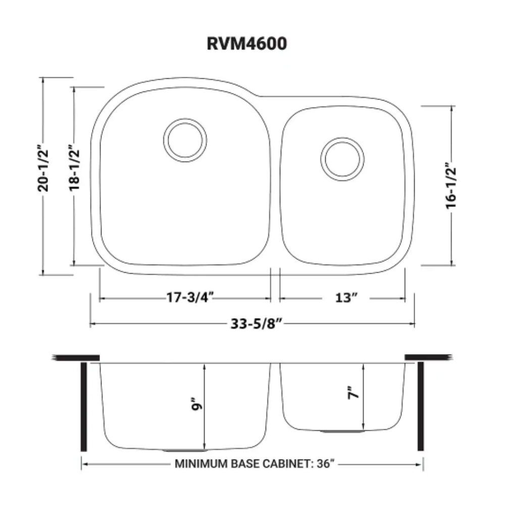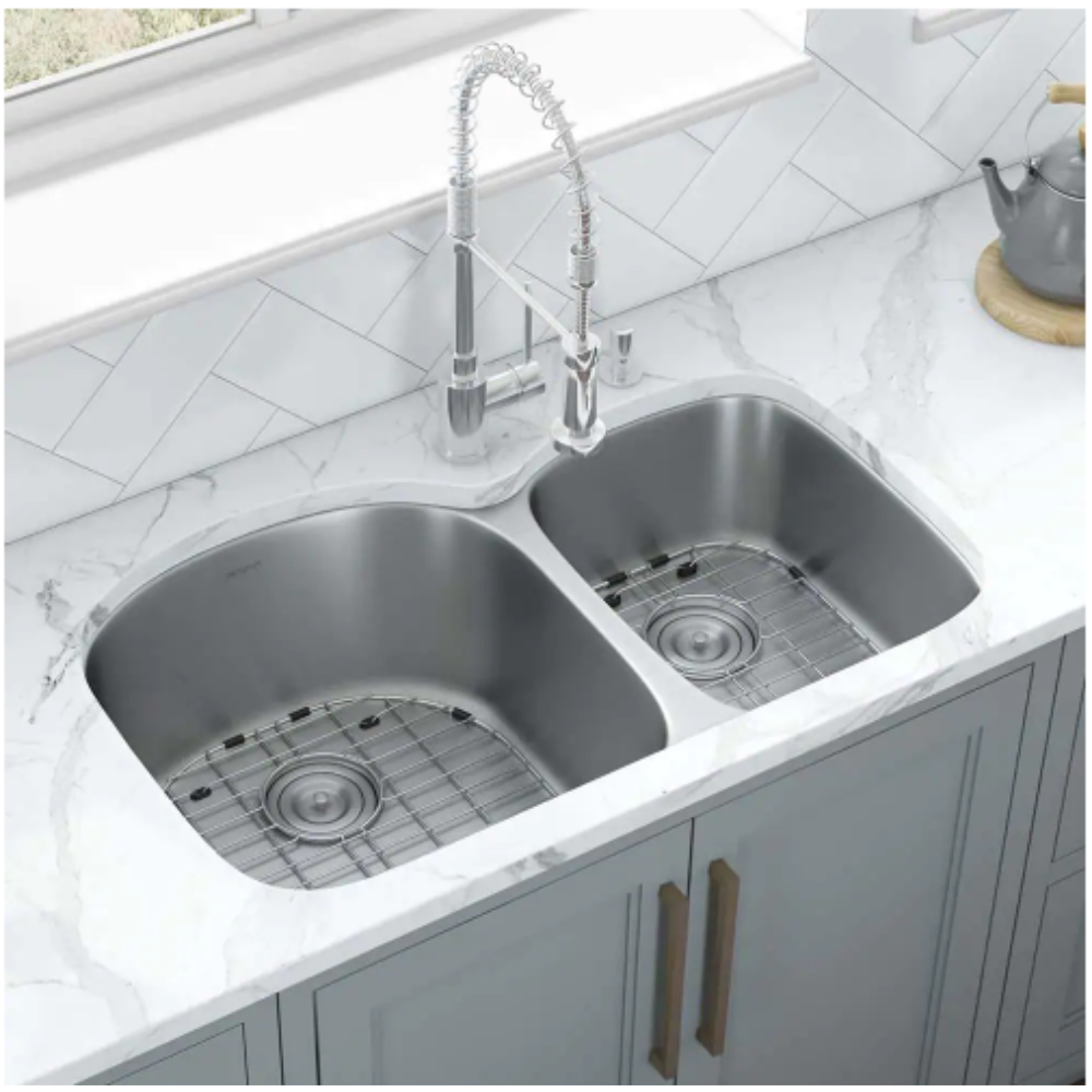 Ruvati 34 in. Double Bowl 60/40 Undermount 16-Gauge Stainless Steel Kitchen Sink - Left Configuration