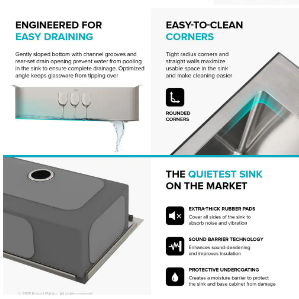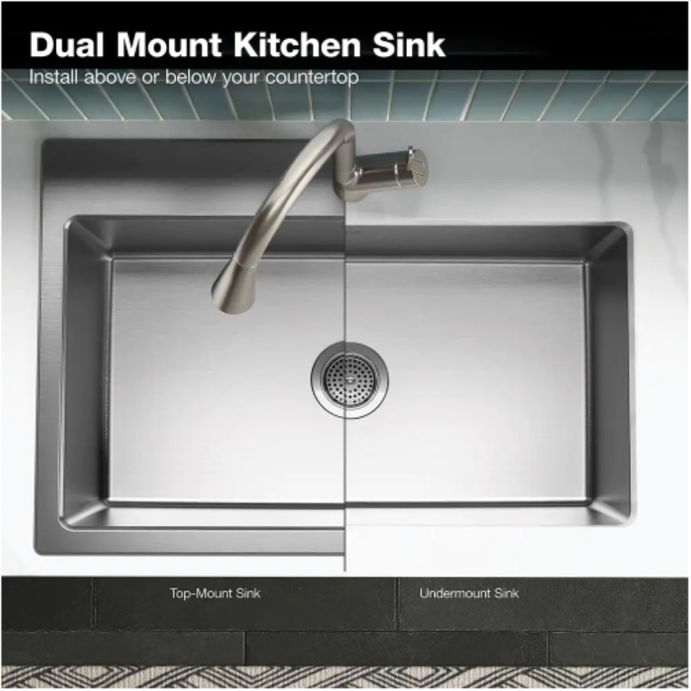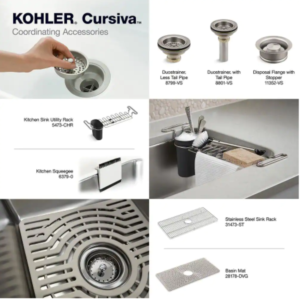 Kohler Cursiva Stainless Steel 33 in. Single Bowl Drop-in or Undermount Kitchen Sink