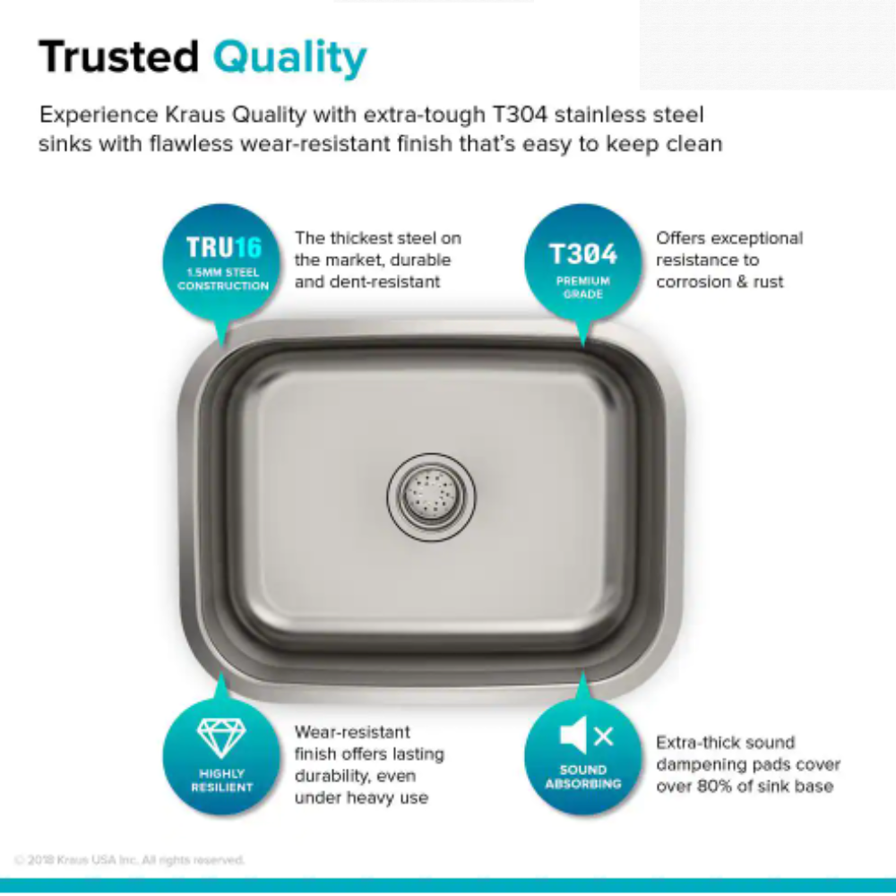 Kraus Premier Undermount Stainless Steel 23 in. Rectangular Single Bowl Kitchen Sink
