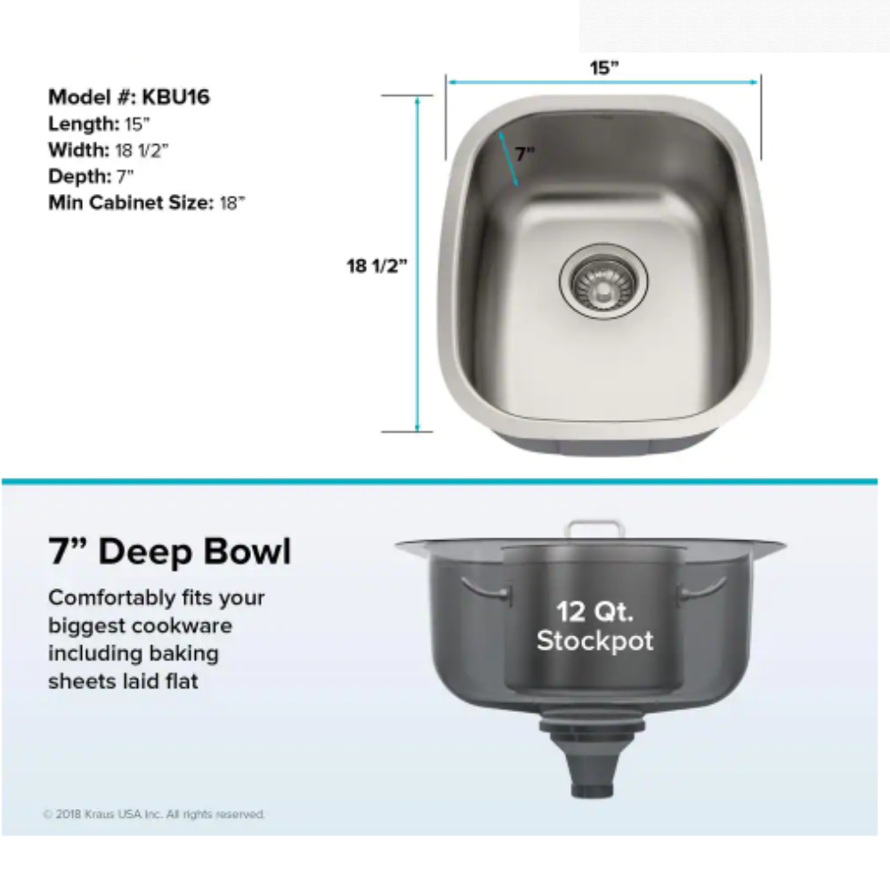 Kraus Premier Stainless Steel 15 in. Undermount Bar Sink