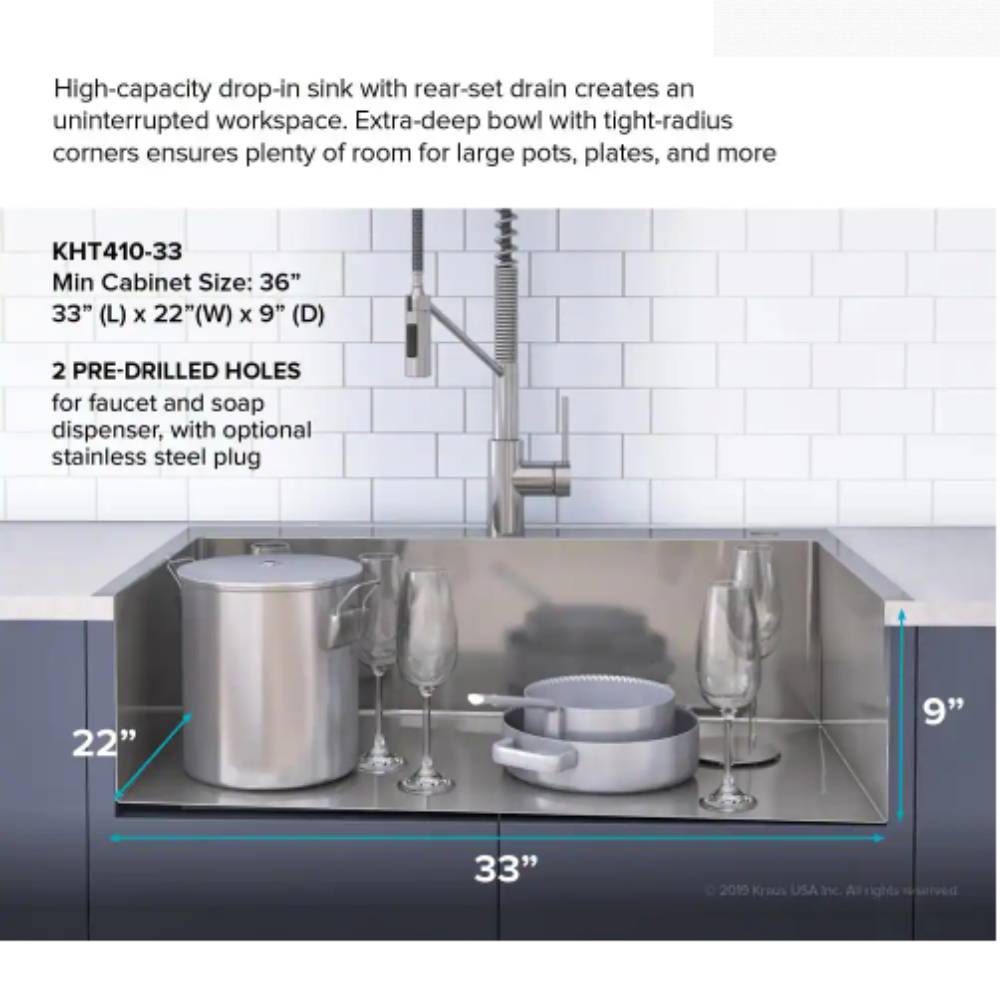 Kraus Loften Undermount/Drop-In Stainless Steel 33 in. 1-Hole Single Bowl Kitchen Sink
