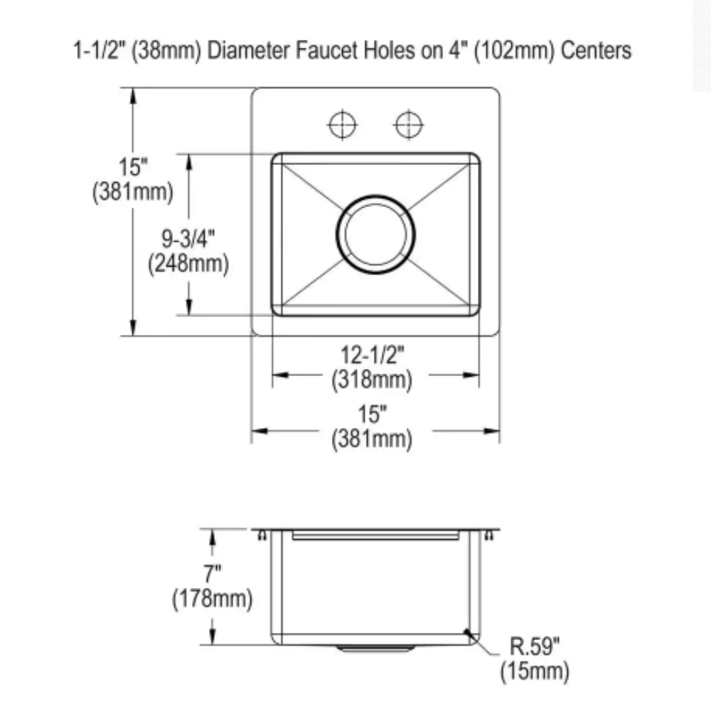 Elkay Crosstown 20 Gauge Stainless Steel 15 in. 2-Hole Dual Mount Bar Sink