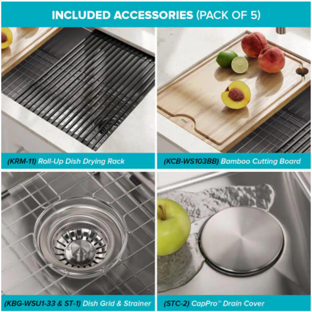 Kraus Kore Workstation 33 in. Stainless Steel Undermount Double Bowl Kitchen Sink w/ Integrated Ledge and Accessories
