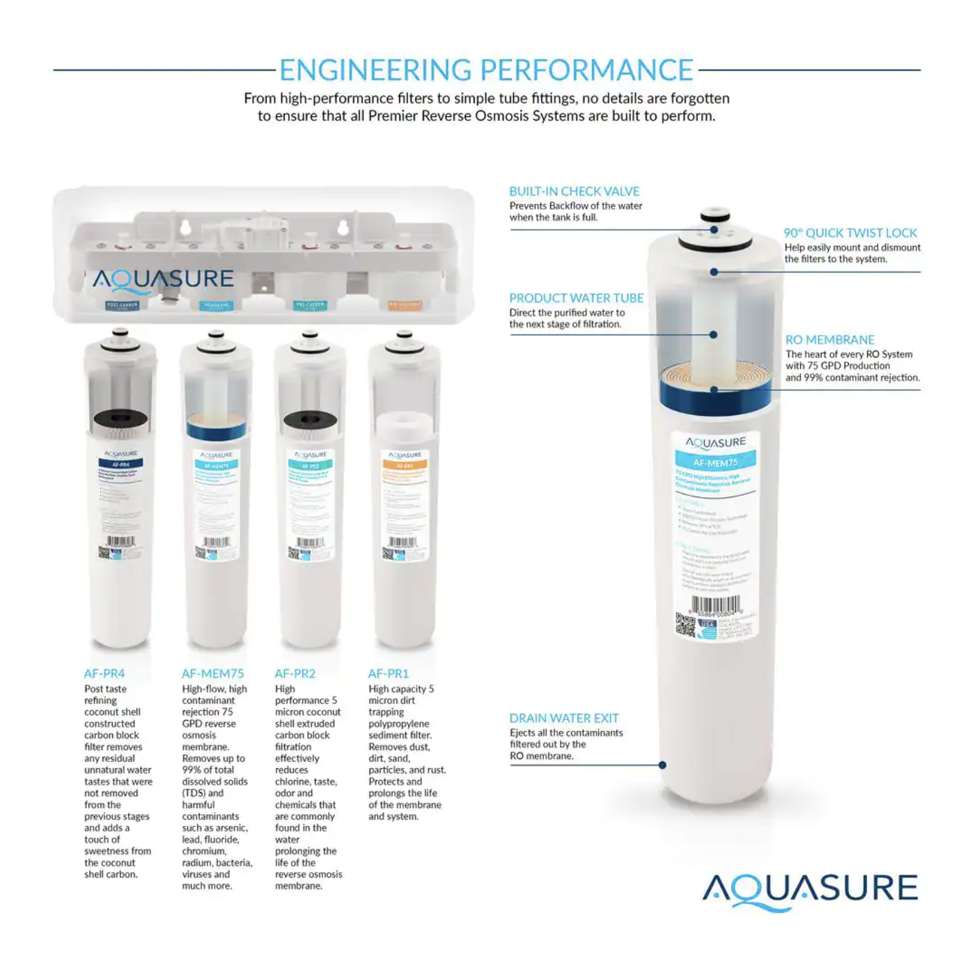 AQUASURE Premier PRO 100 GPD Reverse Osmosis Water Filtration System with LED Indicating Chrome Faucet