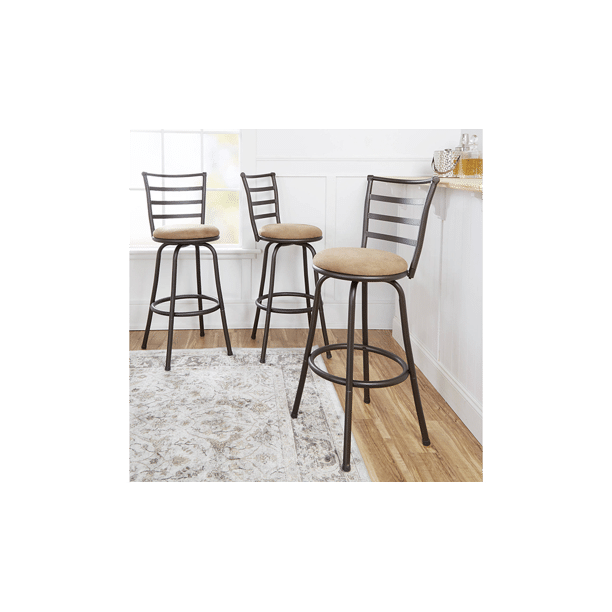Mainstays 3 Pack Adjustable 24″ or 29″ Bronze Swivel Barstool. Tan Microfiber Seat