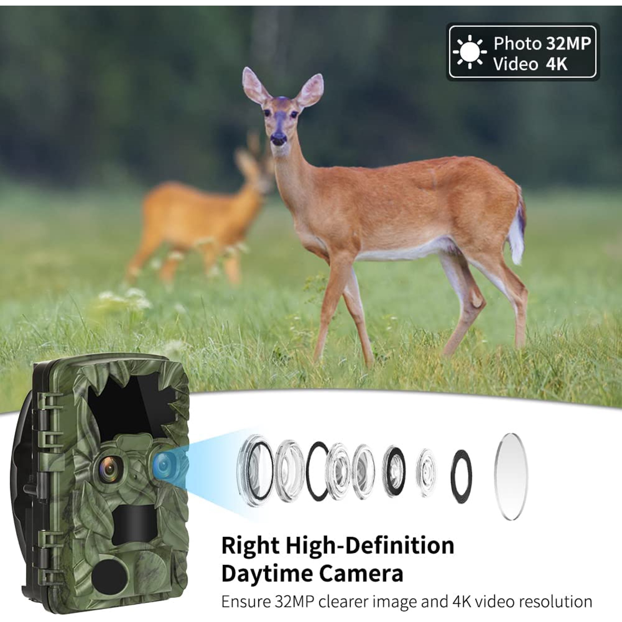 Coolife H8201 4K 32MP Infrared Trail Camera. Trigger Distance Up to 82 ft with Motion Detector 0.1 Seconds Quick Trigger