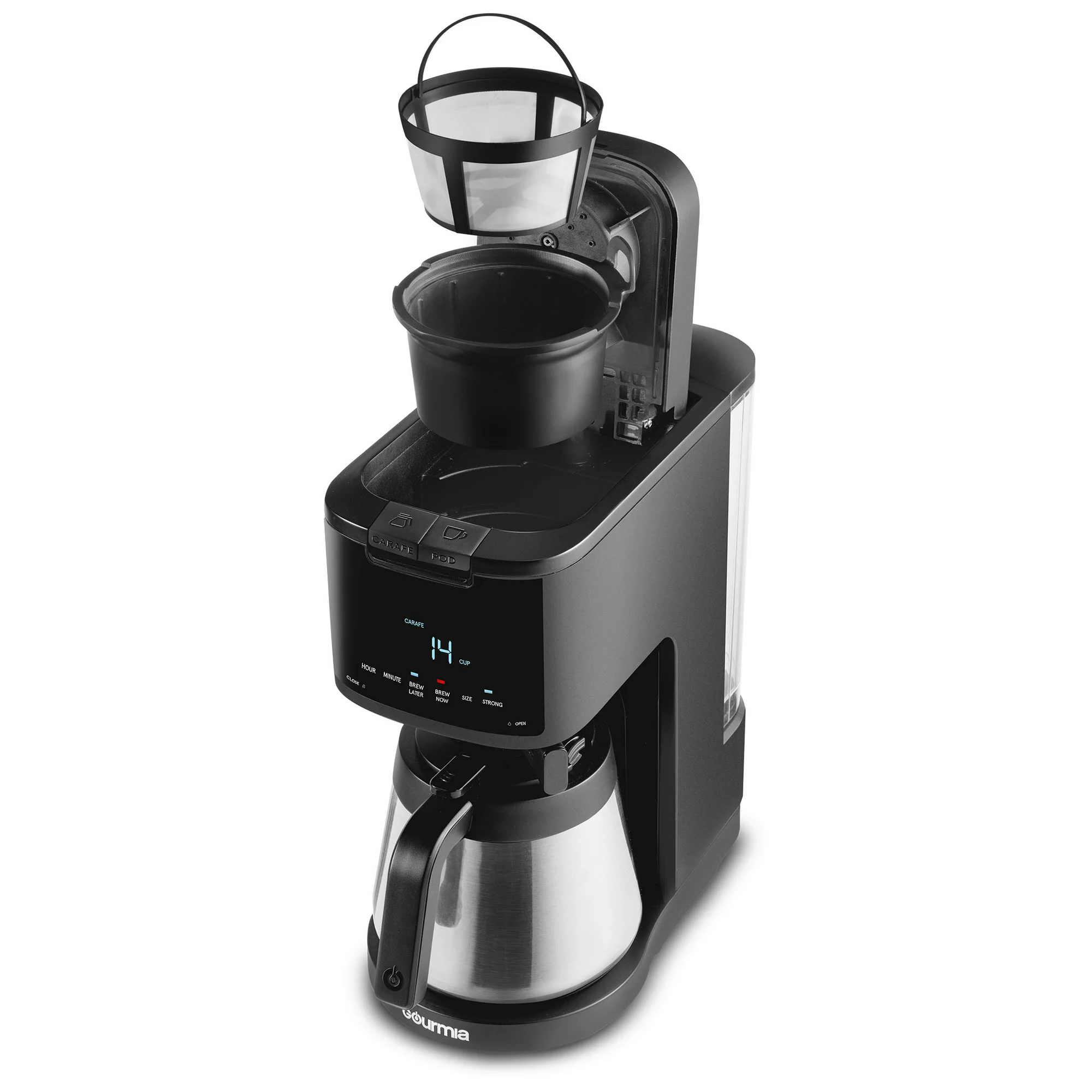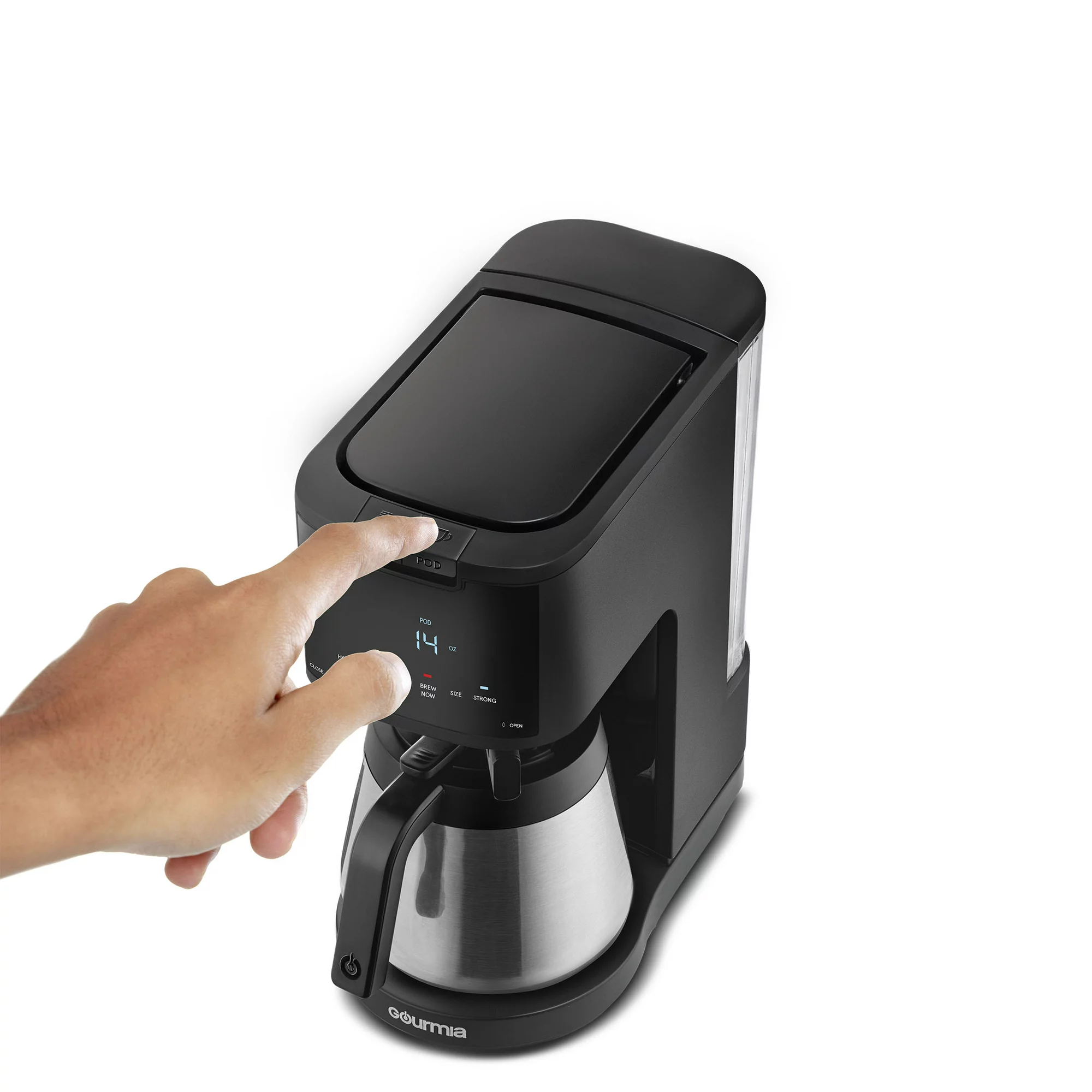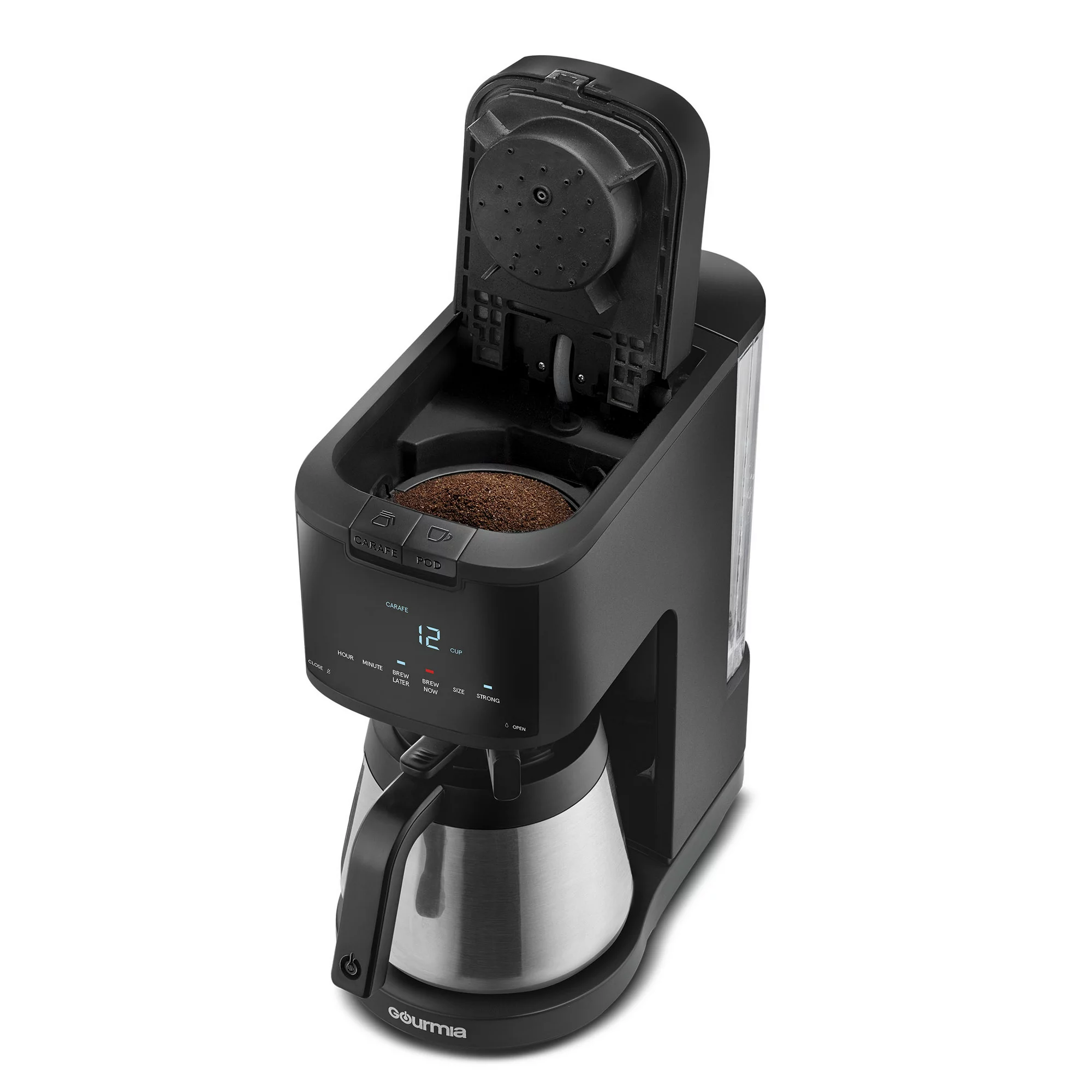 Gourmia 2-in-1 Single-Serve. K-Cup Pod Compatible + 12-Cup Coffee Maker. with Thermal Carafe