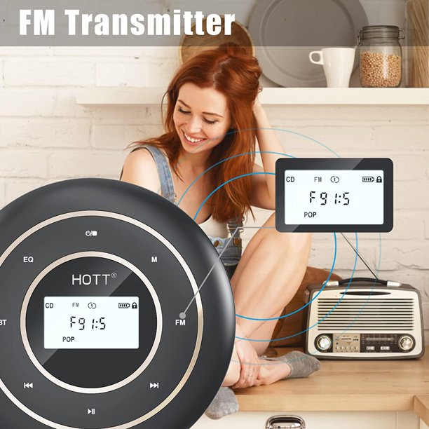 HOTT C105 Portable CD Player with HiFi Bluetooth 5.0 and FM Transmitter Rechargeable Walkman CD Player