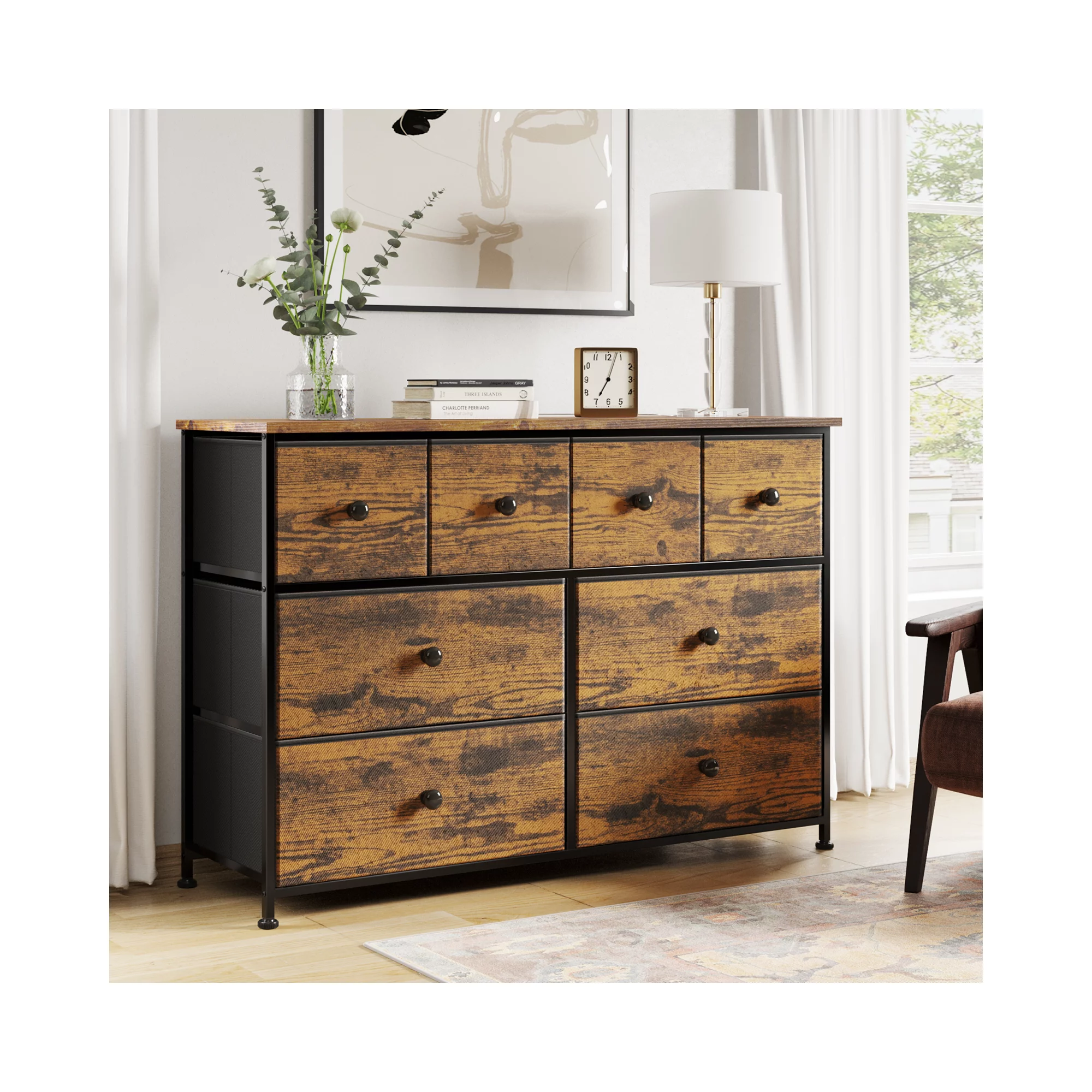 Reahome 8 Drawer Dresser for Bedroom Fabric Dresser Chest of Closets Storage Units Organizer Tower