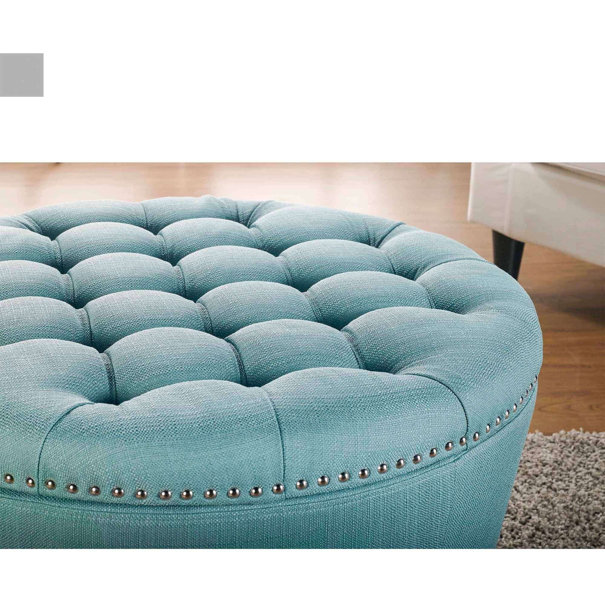 Better Homes and Gardens Round Tufted Storage Ottoman with Nailheads. Teal