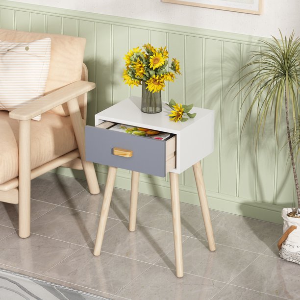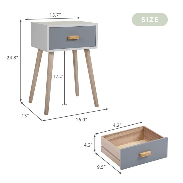 Jaxpety Mid Century Modern Nightstands Set Of 2. Ivory White & Bluish Gray