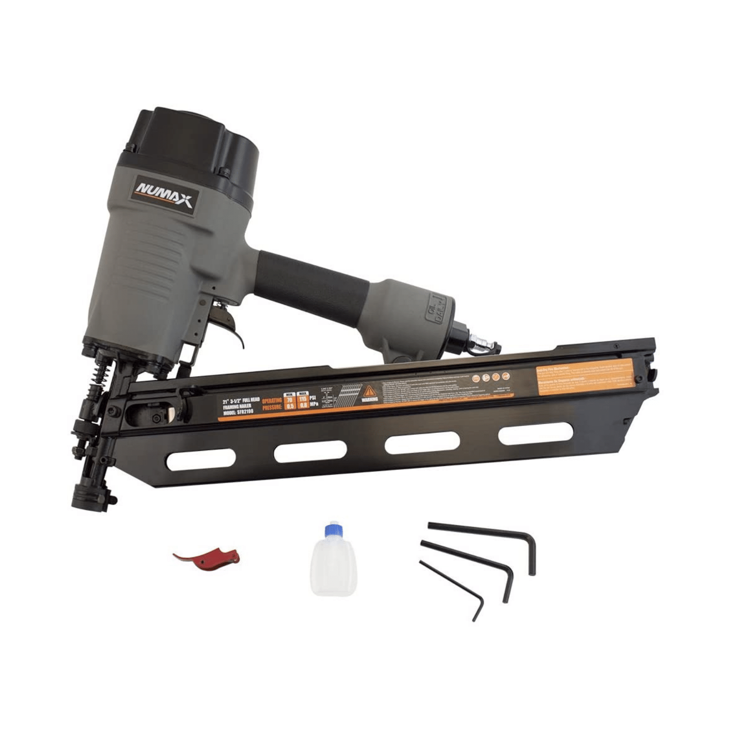 NuMax Pneumatic 21 Degree 3-1/2″ Full Round Head Framing Nailer Ergonomic