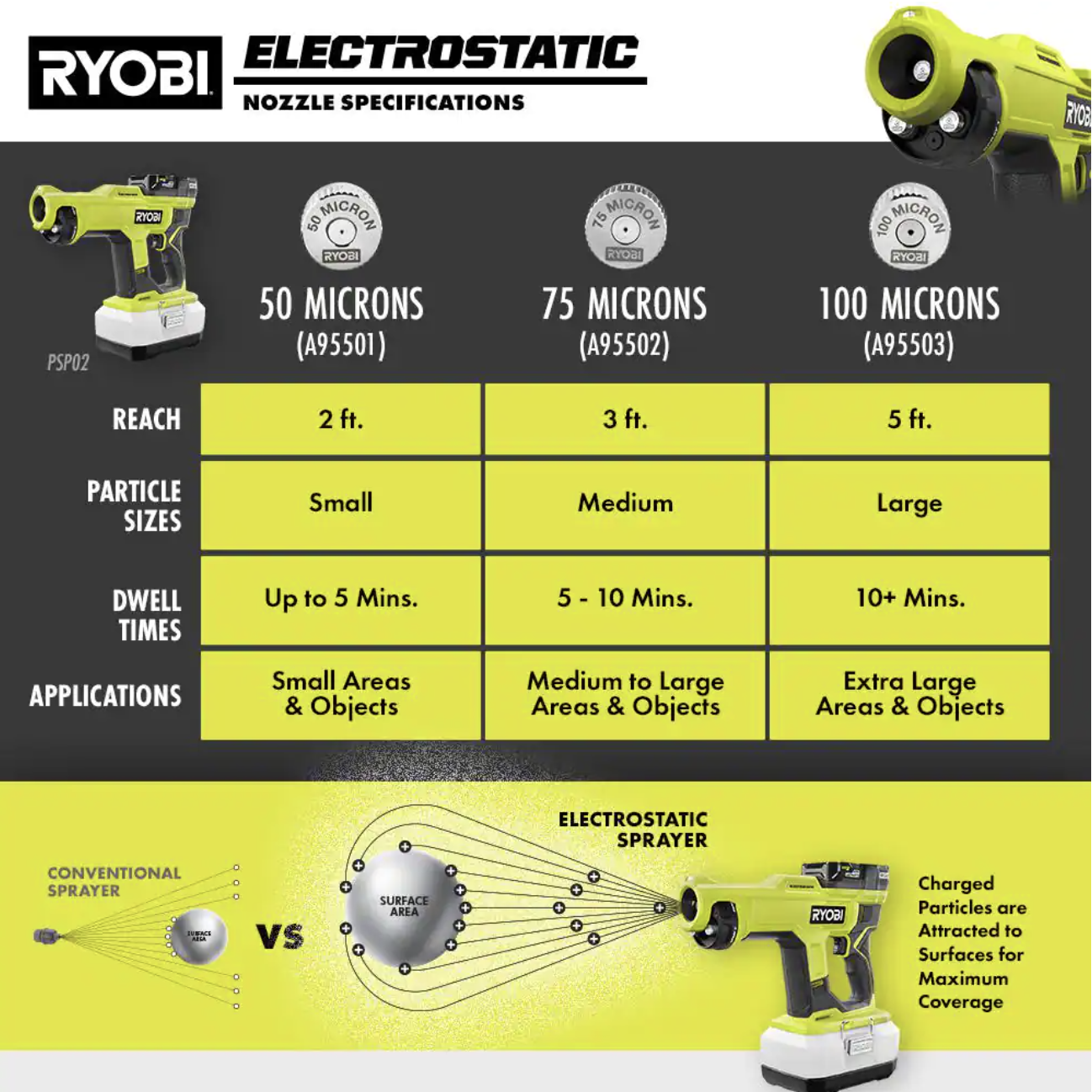 Ryobi ONE+ 18V Cordless Handheld Electrostatic Sprayer with High Performance 4.0 Ah Battery and Charger Kit (PSP02B-PSK004)
