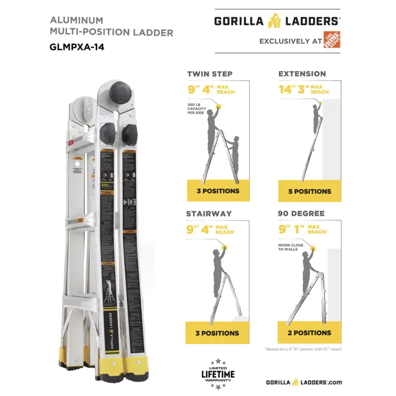 Gorilla Ladders 14 ft. Reach MPXA Aluminum Multi-Position Ladder with 300 lbs. Load Capacity