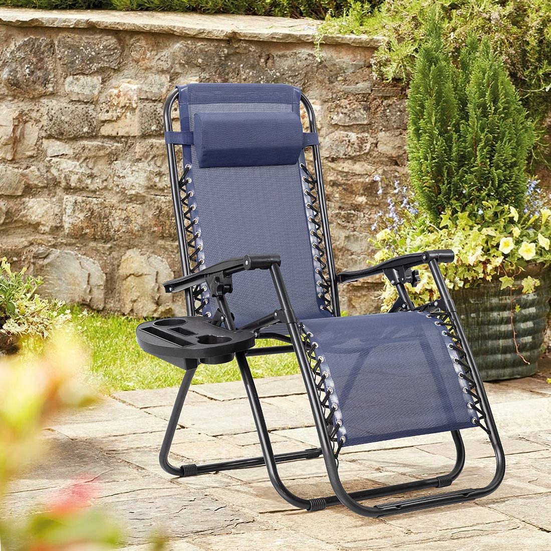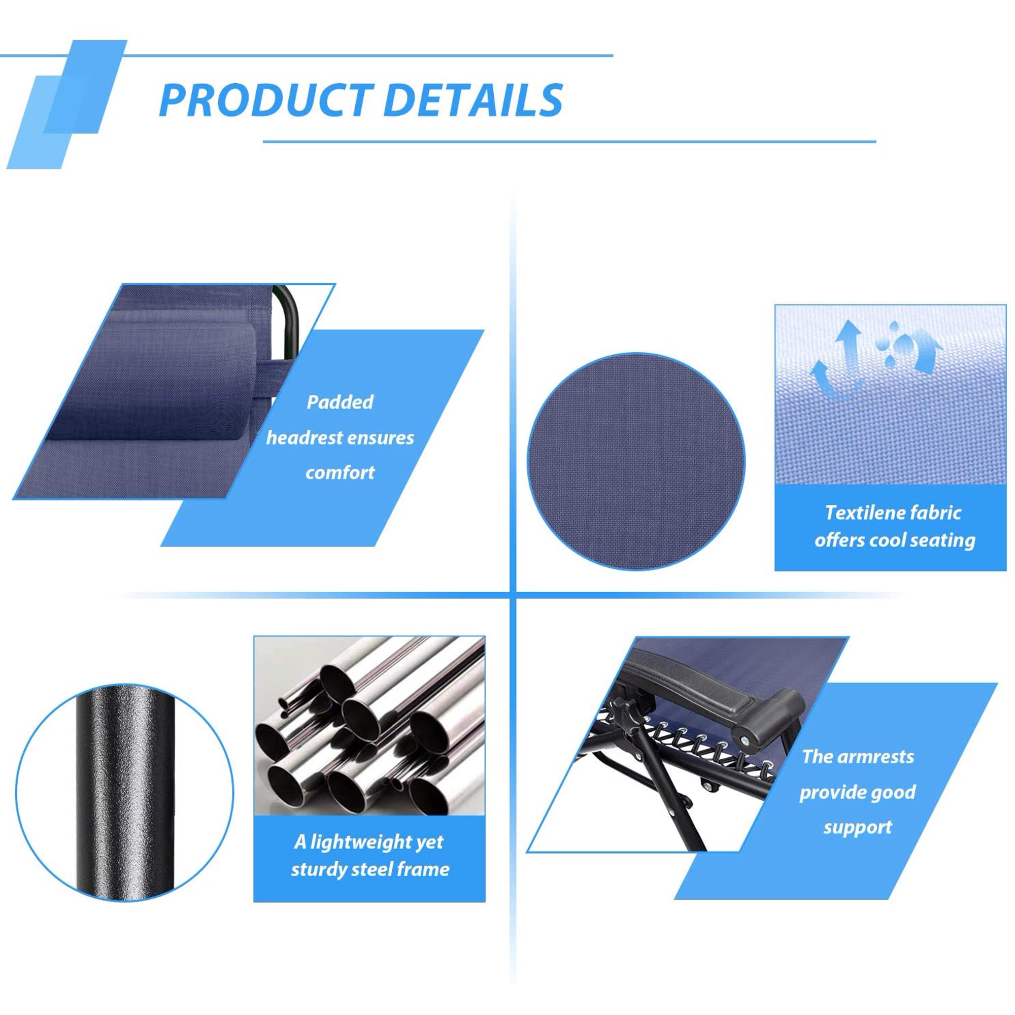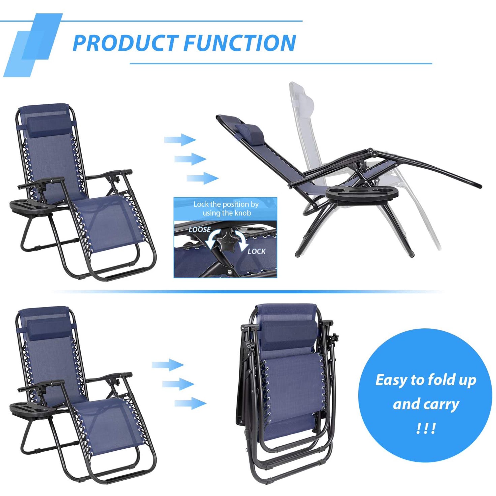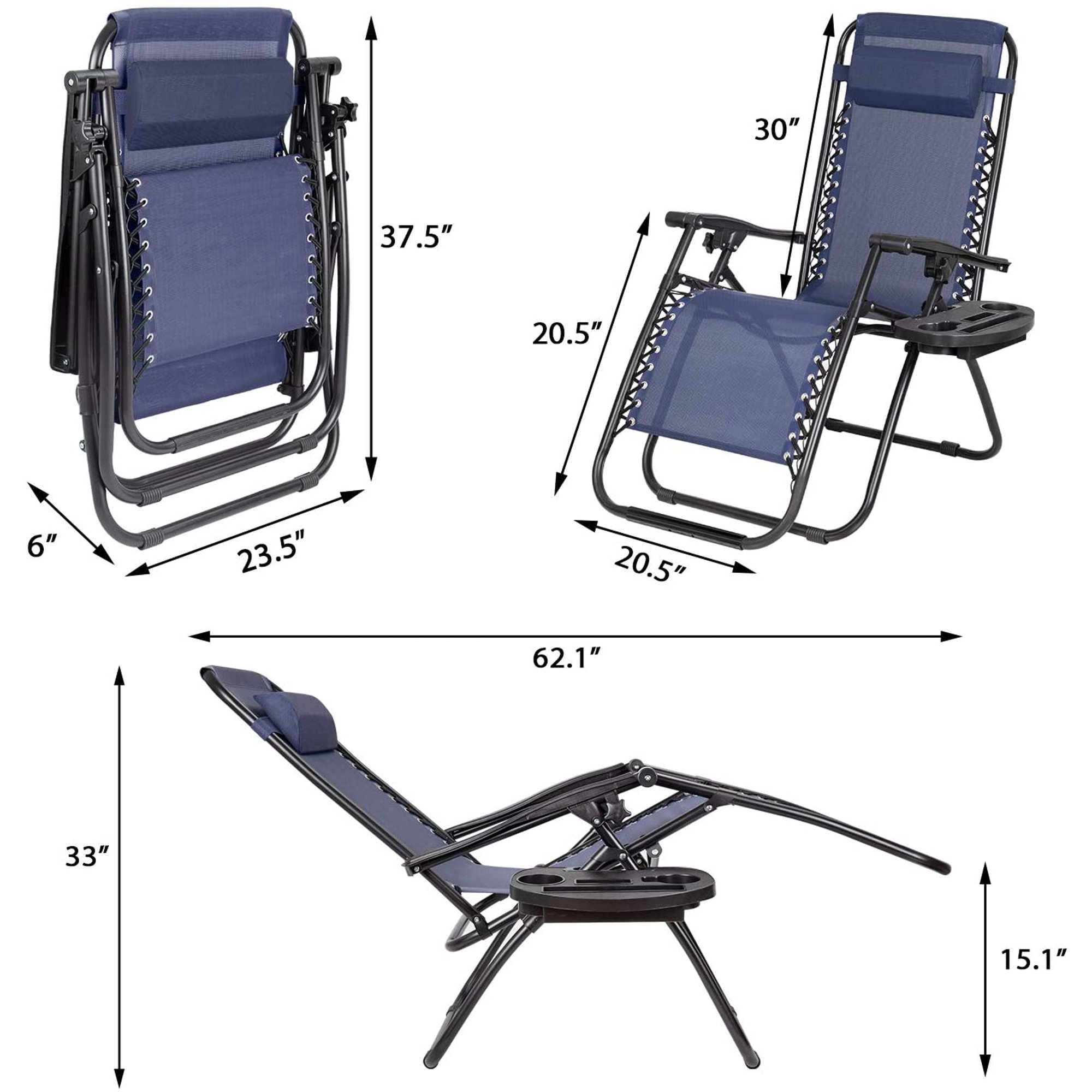 Lacoo 2 Pack Utility Tray Steel Zero-Gravity Chair. Blue