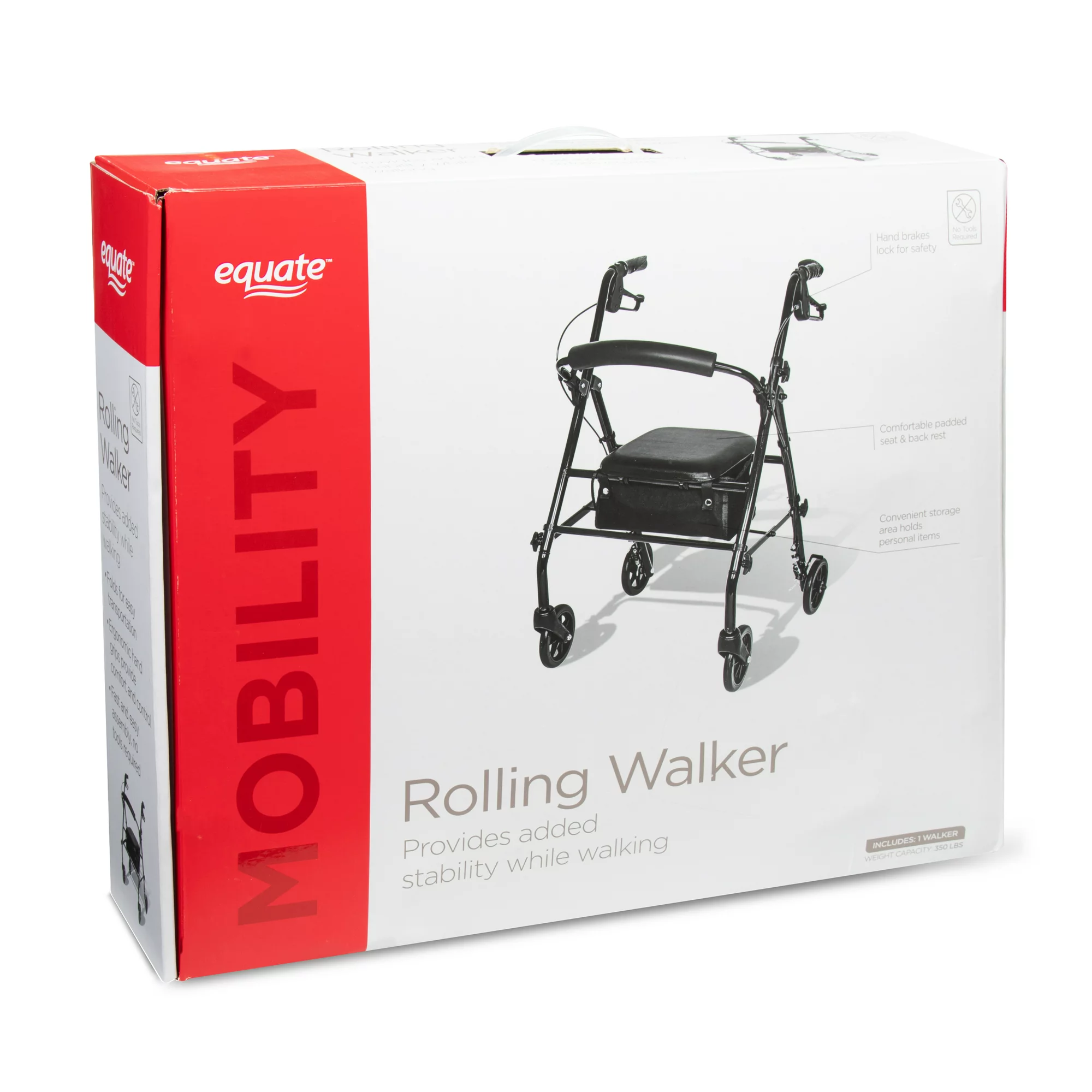 Equate Rolling Walker For Seniors. Rollator Walker with Seat and Wheels. Black