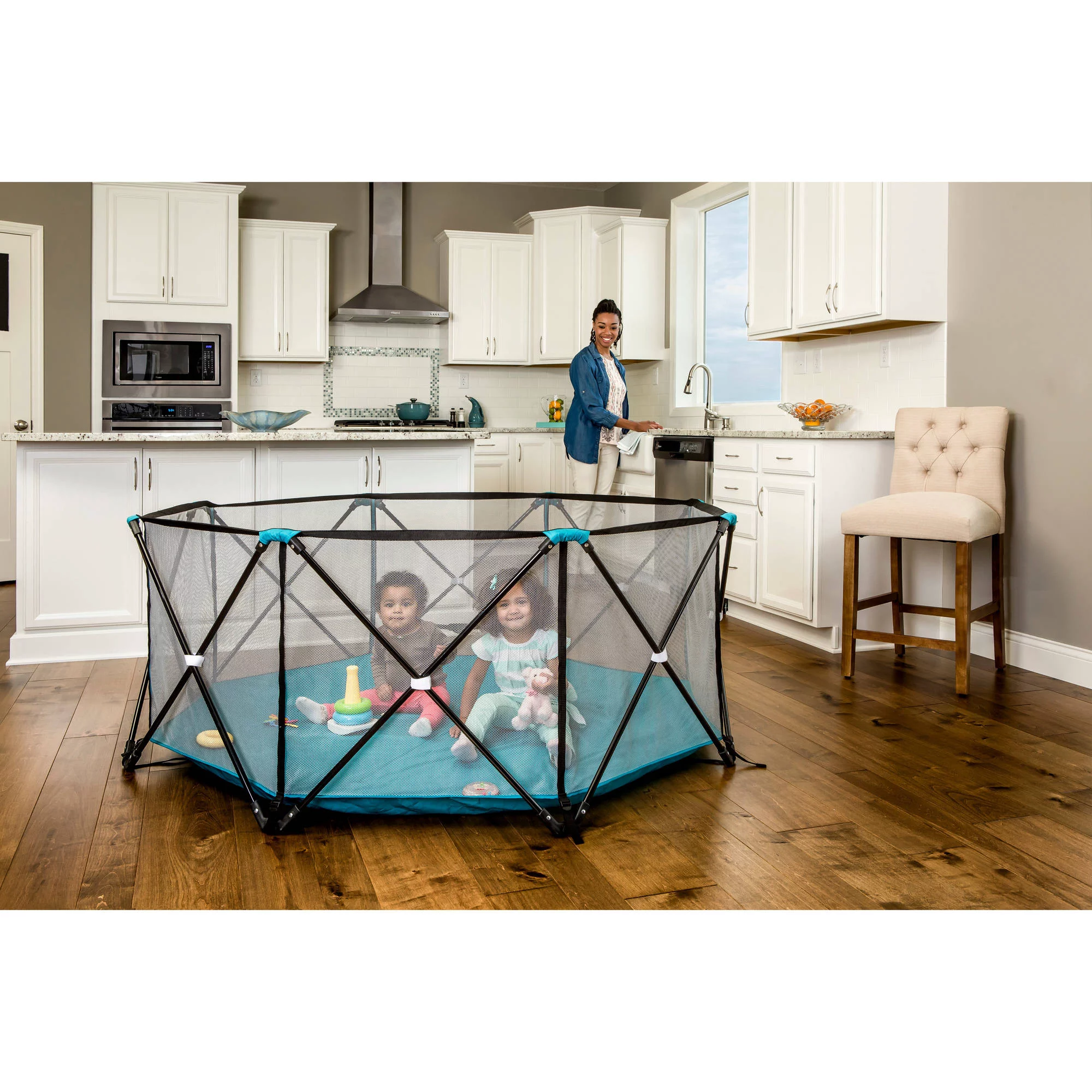 Regalo My Play Portable Play Yard Indoor and Outdoor. Teal. 8-Panel