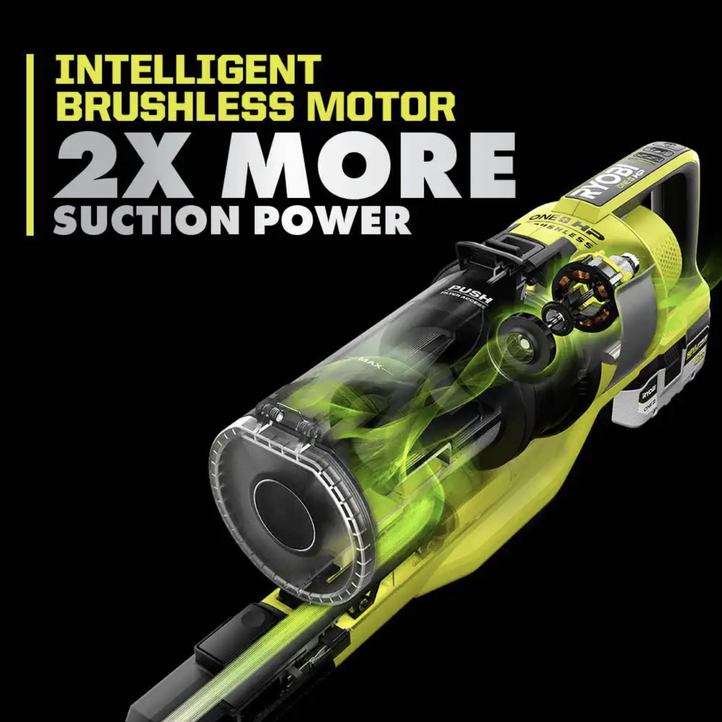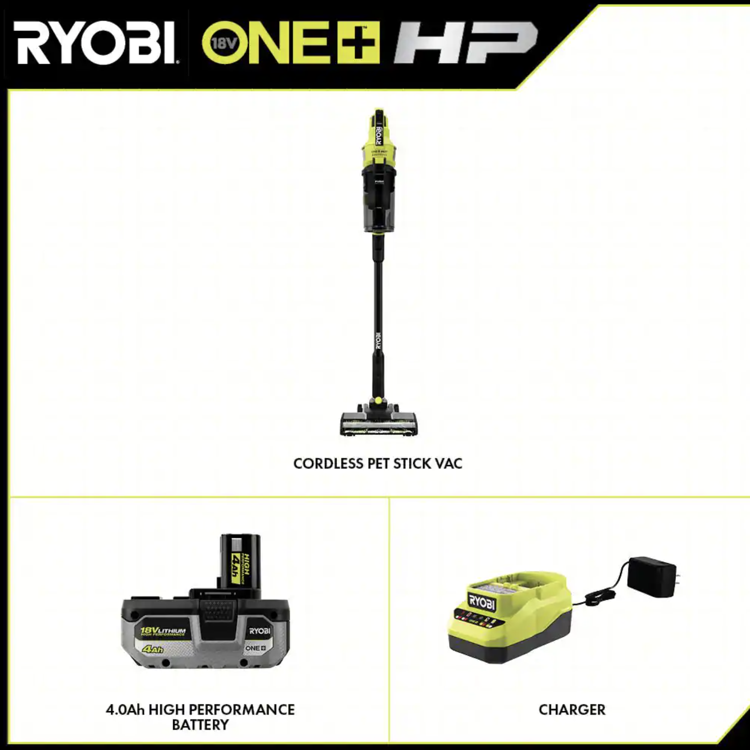 Ryobi One+ HP 18V Brushless Cordless Pet Stick Vacuum Cleaner Kit with 4.0 Ah High-Performance Battery and Charger (PBLSV716K)