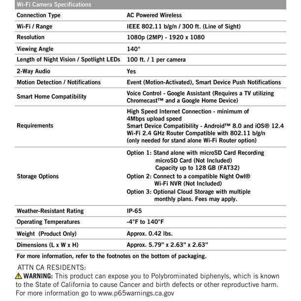 Night Owl Wi-Fi IP 1080p HD. 140 Ultra Wide Angle View. 2-Way Audio Camera (1 Pack)