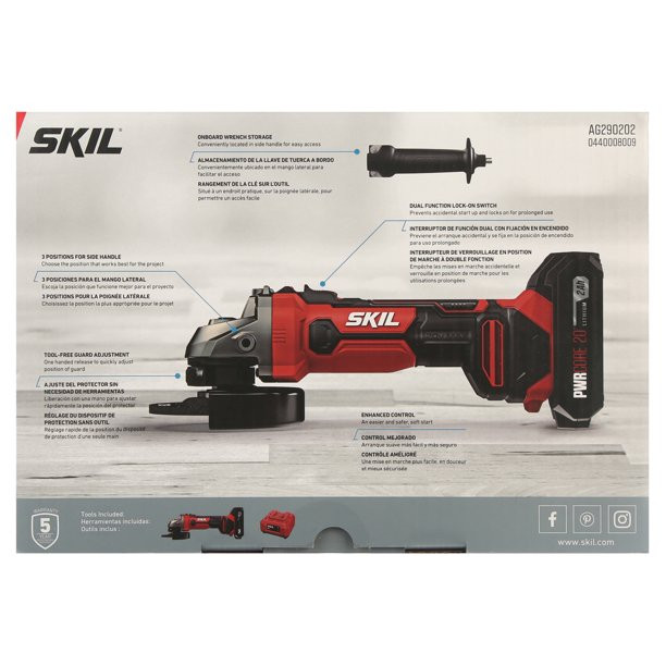 Skil PWR CORE 20? 20V 4-1/2-Inch Cordless Angle Grinder. 2.0Ah Lithium Battery & Charger