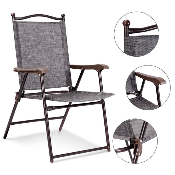 Costway Deck Garden Beach Foldable Steel Outdoor Lounge Chair - Set of 2 - Gray