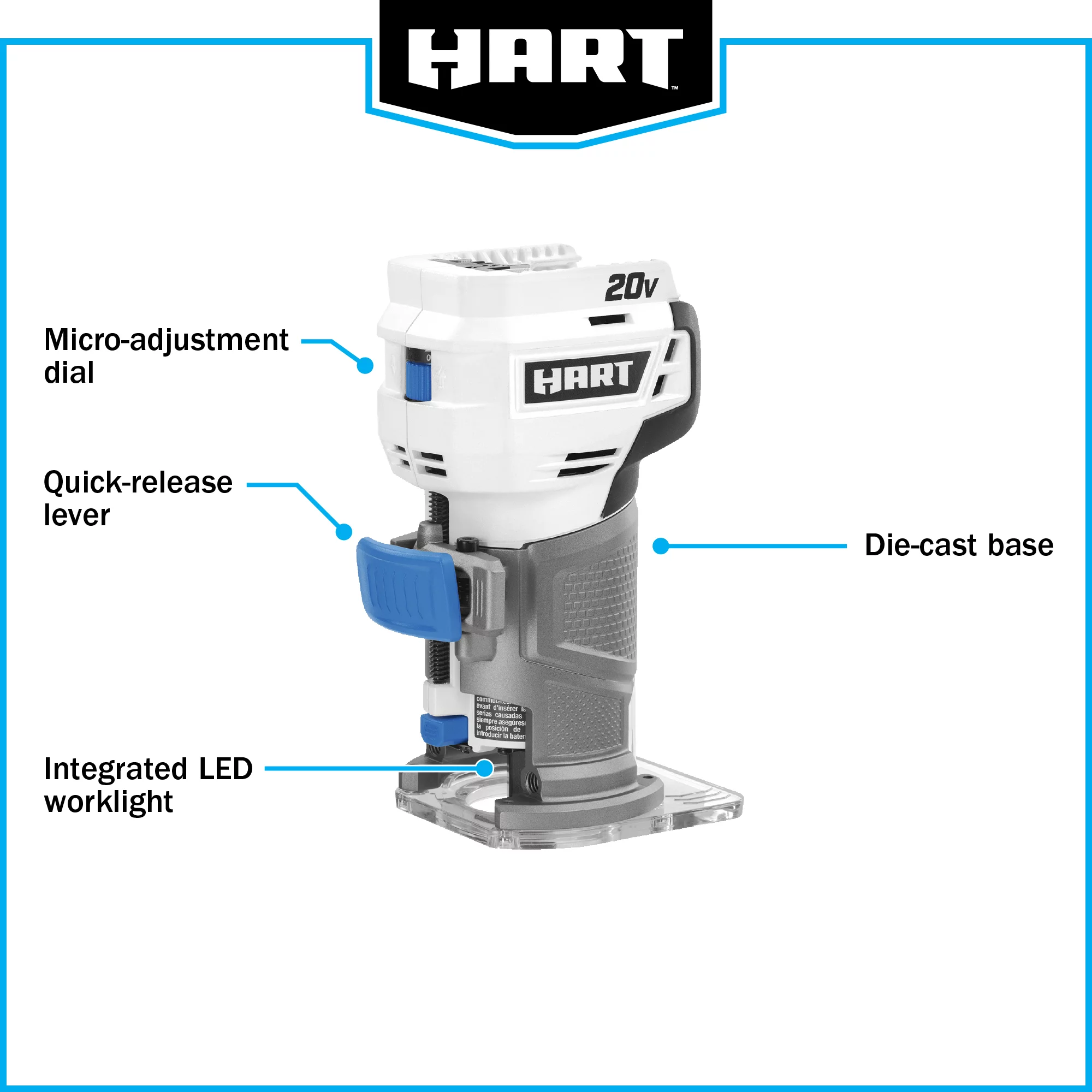 Hart 20-Volt Cordless Trim Router for Cutting. Shaping and Trimming (Battery Not Included)