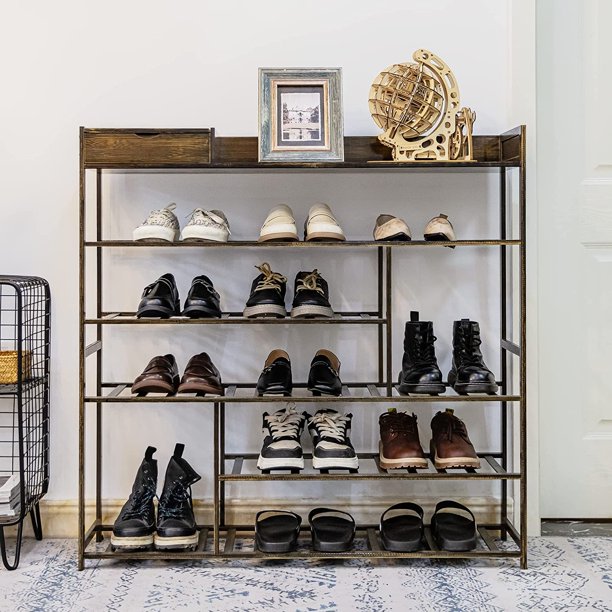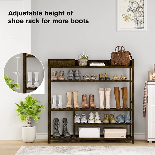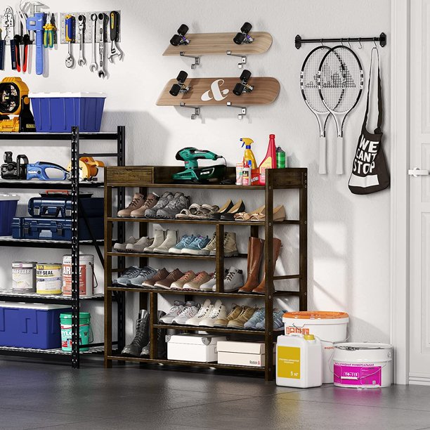 Bamworld Shoes Rack Shelf Organizer for Entryway 5 Tier Bamboo 24 Pair Boots Footwear Book Flowerpots. Dark Brown